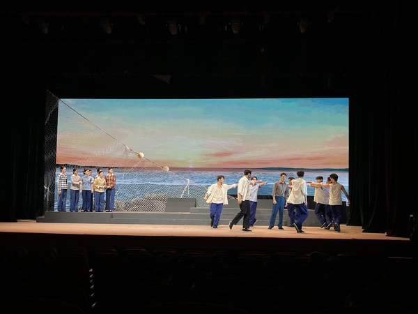 全劇時(shí)長80分鐘,分“爺爺?shù)暮?rdquo;“爸爸的船”“爸爸的提案”“媽媽的網(wǎng)”“爺爺?shù)臒?rdquo;“尾聲”6場(chǎng),包含22首原創(chuàng)歌曲,由學(xué)院戲劇系、舞蹈學(xué)院的學(xué)生擔(dān)綱演出,學(xué)院資產(chǎn)經(jīng)營公司負(fù)責(zé)項(xiàng)目執(zhí)行。劇組自今年7月份進(jìn)入排練階段,全體參演人員克服高溫,積極投入到排練工作中,歷時(shí)兩個(gè)月,完成了該劇的首創(chuàng)工作。