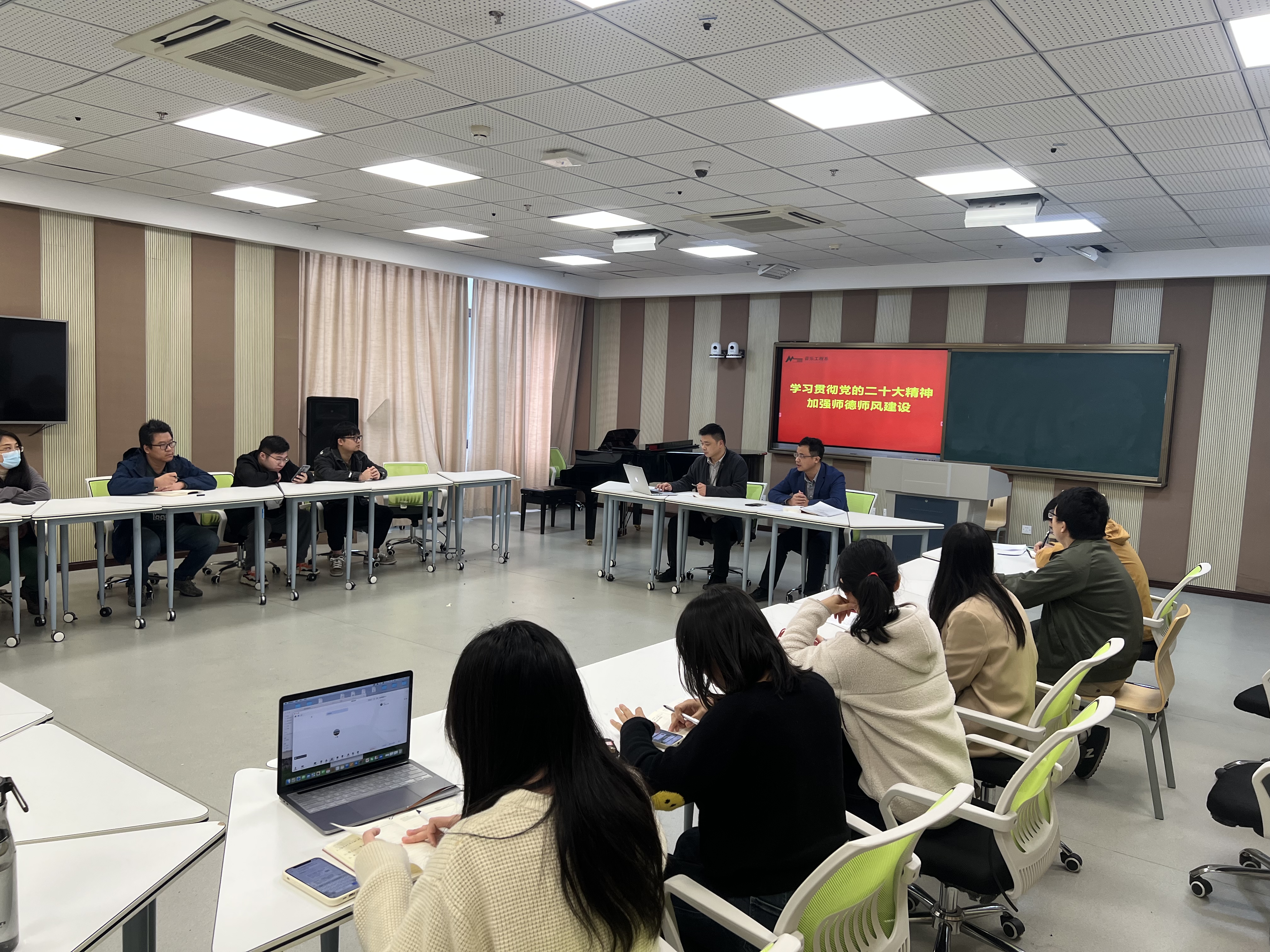為進一步學習宣傳貫徹黨的二十大精神,認真落實《關于組織開展第三屆師德師風建設主題教育月活動的實施方案》的相關要求,近日,音樂工程系組織全體教師召開政治理論學習會,引導廣大教師堅定理想信念、厚植愛國情懷、涵養(yǎng)高尚師德。