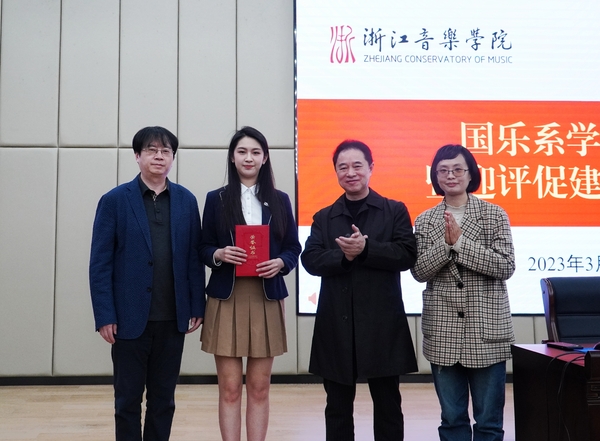 大會(huì)還對(duì)2022年度獲研究生國(guó)家獎(jiǎng)學(xué)金、研究生一等獎(jiǎng)學(xué)金及省政府獎(jiǎng)學(xué)金的優(yōu)秀學(xué)生進(jìn)行表彰,由專業(yè)導(dǎo)師為獲獎(jiǎng)學(xué)生頒獎(jiǎng)。獲獎(jiǎng)學(xué)生代表表示,要始終秉持“弘毅尚徳、博約精藝”的浙音人價(jià)值觀,堅(jiān)持迎評(píng)促建、以評(píng)促學(xué),以身示范、督促學(xué)習(xí),為決戰(zhàn)決勝本科教學(xué)工作合格評(píng)估貢獻(xiàn)最大力量。