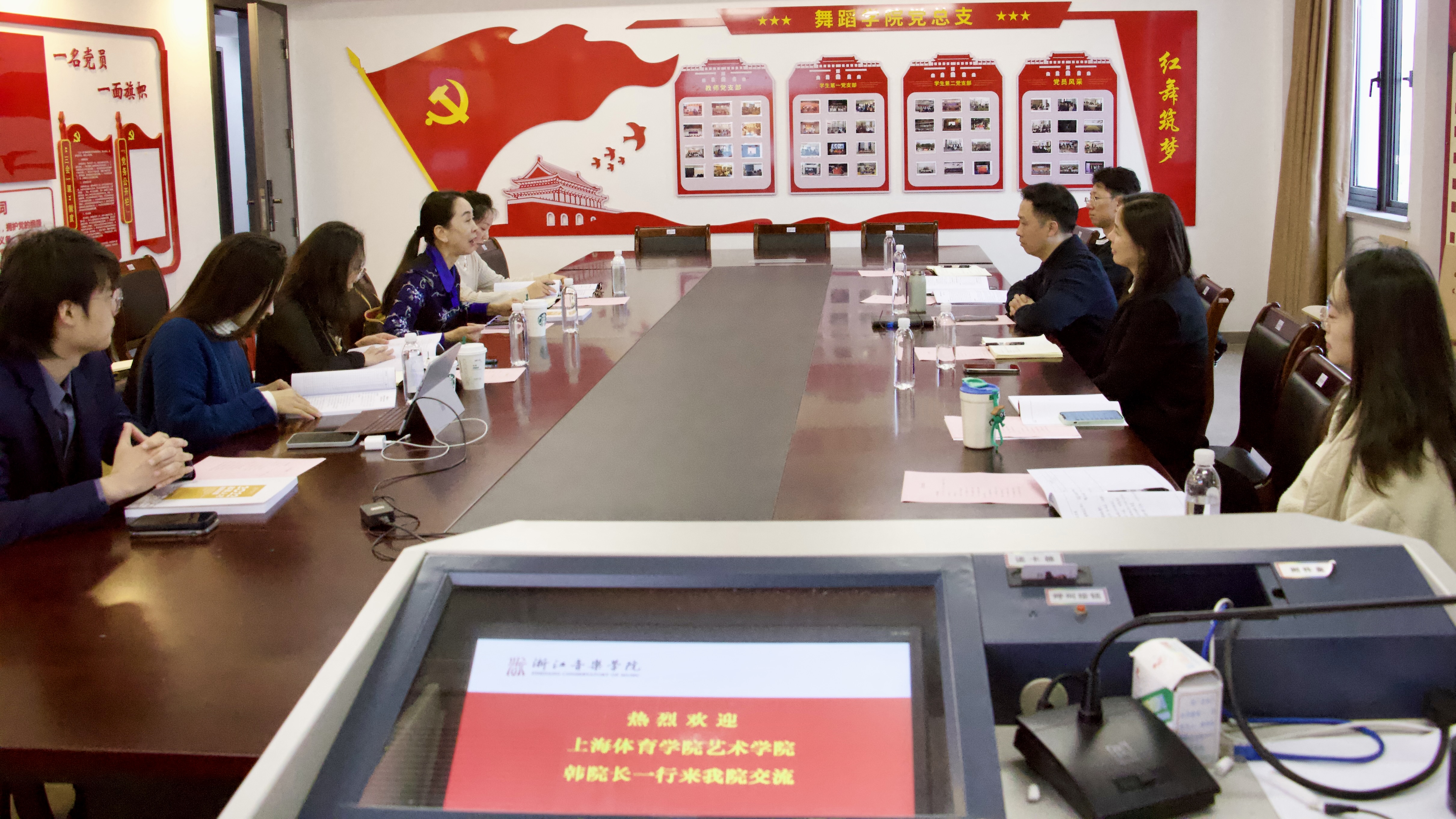 近日,上海體育學(xué)院藝術(shù)學(xué)院副院長韓春英教授一行來舞蹈學(xué)院交流訪問,圍繞舞蹈編導(dǎo)專業(yè)建設(shè)、體育院校的舞蹈學(xué)科發(fā)展等話題展開討論。舞蹈學(xué)院院長徐頏教授以及編導(dǎo)教研室教師出席會議。