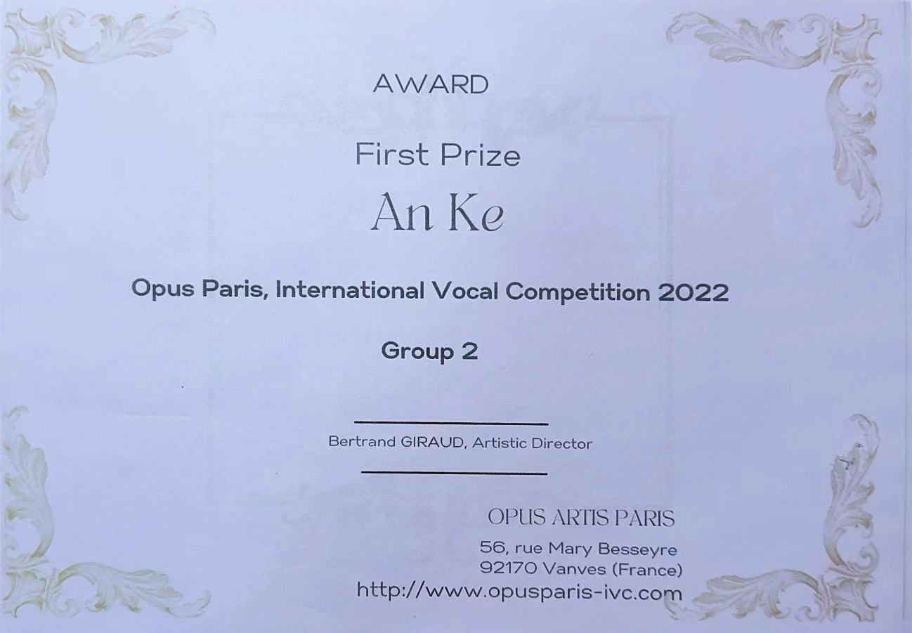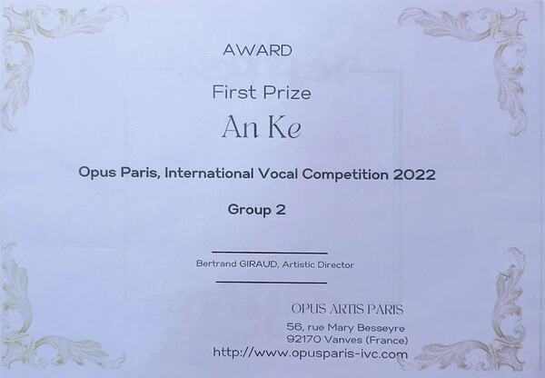 近日,2022 Opus法國巴黎國際聲樂比賽落下帷幕,經過激烈角逐,學院聲樂歌劇系青年教師安科在晉級決賽的12位選手中脫穎而出,獲得比賽的第一名。