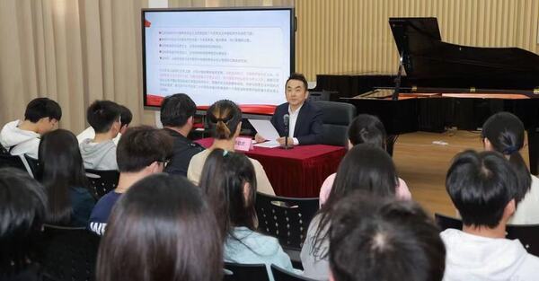 董德君在黨課中指出“德藝雙馨”,德在先,學(xué)藝先做人,在做到德的同時(shí),也要追求專業(yè)的能力,從而實(shí)現(xiàn)人生的價(jià)值。他以黨的二十大報(bào)告中的關(guān)鍵詞、習(xí)近平總書記對(duì)青年的期望、浙音人的使命等幾個(gè)方面展開,講述了一堂充滿思想與音樂(lè)文化的思政課,激發(fā)了浙音學(xué)子追求更高音樂(lè)造詣。他強(qiáng)調(diào),我們要牢記習(xí)近平總書記對(duì)新時(shí)代青年的殷殷囑托,要做有理想、敢擔(dān)當(dāng)、能吃苦、肯奮斗的新時(shí)代好青年。大家不僅要有遠(yuǎn)大的理想,擔(dān)當(dāng)?shù)囊庾R(shí),更要練就過(guò)硬的本領(lǐng)。“事必盡善”是浙音的校訓(xùn),“弘毅尚德、博約精藝”是浙音價(jià)值理念,作為將來(lái)的文藝工作者,我們要以繼承弘揚(yáng)民族優(yōu)秀傳統(tǒng)文化,發(fā)展傳播中國(guó)藝術(shù)為己任、磨礪技藝、精益求精,為人民抒寫、為人民抒情、為人民抒懷,打造思想、精神、藝術(shù)精湛、制作精良的精品力作,塑造具有熾熱的家國(guó)情懷、深厚的文化底蘊(yùn)、扎實(shí)的藝術(shù)功底和藝術(shù)成果的時(shí)代新人。他表示,作為省屬唯一音樂(lè)藝術(shù)本科高校,浙音自覺(jué)肩負(fù)起服務(wù)文化強(qiáng)省的使命意識(shí)和責(zé)任意識(shí),圍繞“兩個(gè)先行”奮斗目標(biāo),“八個(gè)高地”具體目標(biāo)和“十個(gè)著力”主要任務(wù),打造文化人才積聚平臺(tái)、建立文化藝術(shù)品牌、推動(dòng)文藝精品創(chuàng)作,以高質(zhì)量文化供給不斷增強(qiáng)人民精神文化生活的獲得感和幸福感。最后,他希望我們要以德藝雙馨為目標(biāo),心中有陽(yáng)光,腳下有力量,用青春書寫新時(shí)代榮光,用實(shí)際行動(dòng)實(shí)現(xiàn)人生價(jià)值。