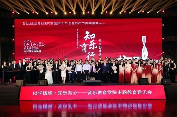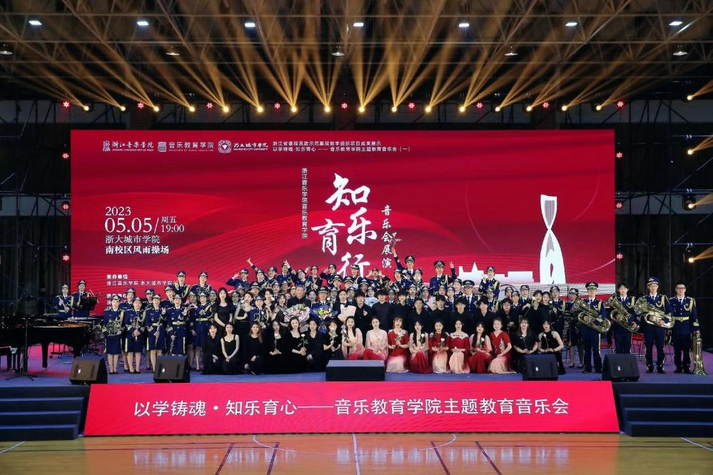 學(xué)習(xí)新思想,致敬新時代。為深入開展學(xué)習(xí)貫徹習(xí)近平新時代中國特色社會主義思想主題教育,進一步加強院校合作交流,充分展現(xiàn)青年學(xué)子團結(jié)向上、青春靚麗的風(fēng)貌,5月5日,音樂教育學(xué)院走進浙大城市學(xué)院開展了主題教育音樂會暨“知樂育行”音樂會展演活動。浙大城市學(xué)院黨委書記洪慶華、黨委副書記賈秀英、副校長斯榮喜、體育美育教學(xué)部副部長黃曉,浙江音樂學(xué)院音樂教育學(xué)院黨總支書記楊陽、副院長查大林等領(lǐng)導(dǎo)出席本次活動,千余名師生齊聚浙大城市學(xué)院南校區(qū)風(fēng)雨操場共同觀看。