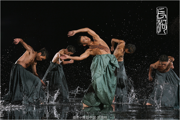 三是聚焦融合創(chuàng)新。創(chuàng)作團(tuán)隊教師積極發(fā)揚共產(chǎn)黨人開拓創(chuàng)新精神,一改傳統(tǒng)的舞劇敘事結(jié)構(gòu),以身體模擬形態(tài),以形態(tài)進(jìn)行言說。這一理念是相對抽象的,學(xué)生也是不容易接受的。為了解決排練中的這一問題,編導(dǎo)首先需要抓住的是中國人特有的身體律動,這種律動方式需要去中華文明土地上的各種民間舞蹈中找尋?!堕L河》沒有選擇以某一種民間舞蹈為出發(fā)點進(jìn)行創(chuàng)作,而是在觀測了各個民間舞蹈的律動之后,創(chuàng)新出一種新的舞蹈語匯,它具有中國性,也具有創(chuàng)新性。如此,學(xué)生在訓(xùn)練的過程中培養(yǎng)出符合中國氣質(zhì)與中國韻味的身體形態(tài)。以“淤泥”為例,它以極其慢速的動作變化模擬淤泥阻塞的狀態(tài),沉悶的氣壓讓人窒息。生命的衰老亦是如此,拖著沉重的步伐,步履維艱,卻依然向前。