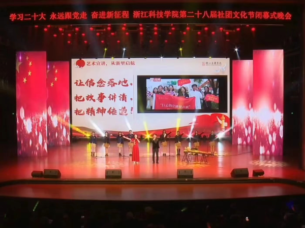 5月7日,思政社團“青年講習所”受邀參加浙江科技學院社團文化節(jié)閉幕式晚會,來自聲樂歌劇系、音樂教育學院、舞蹈學院、國樂系的同學們參加,并帶來了由學院社團研會聯(lián)動展演活動遴選出來的優(yōu)秀展演節(jié)目《藝術宣講,從“浙”里啟航》。