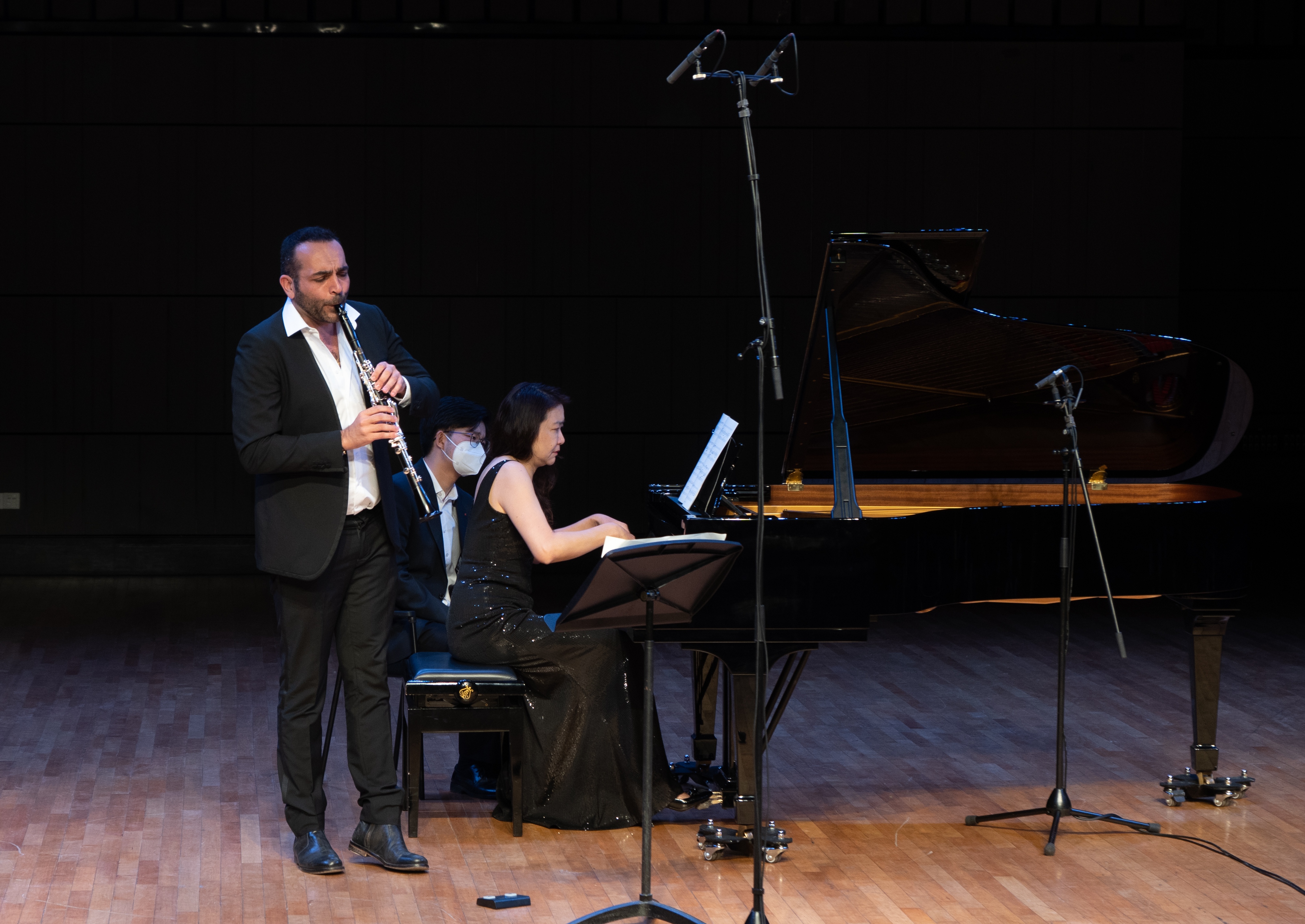 10日晚,皮埃爾·杰尼森單簧管獨(dú)奏音樂會精彩呈現(xiàn),現(xiàn)場氣氛相當(dāng)熱烈,音樂廳座無虛席。音樂會由皮埃爾與浙音室內(nèi)樂學(xué)院特聘教授史佳怡合作完成。皮埃爾甄選了肖松的《行板與快板》、維多的《引子與回旋》、布列茲的《領(lǐng)域》、普朗克的《奏鳴曲》等最為經(jīng)典的法國音樂以及德國作曲家勃拉姆斯的《奏鳴曲》op.120,音樂風(fēng)格跨越浪漫主義中期、新古典主義以及現(xiàn)代派音樂,充分展現(xiàn)了法國音樂的浪漫與迷人和勃氏音樂的詩意和智性。最后,在聽眾熱烈的掌聲中,皮埃爾返場加演了意大利作曲家曼加尼為董德君教授譜寫的新作《來自中國的旋律》,以及美國作曲家格什溫的《三首前奏曲》。兩首作品經(jīng)皮埃爾的生動詮釋,給人留下深刻的印象,場上氣氛高潮迭起。