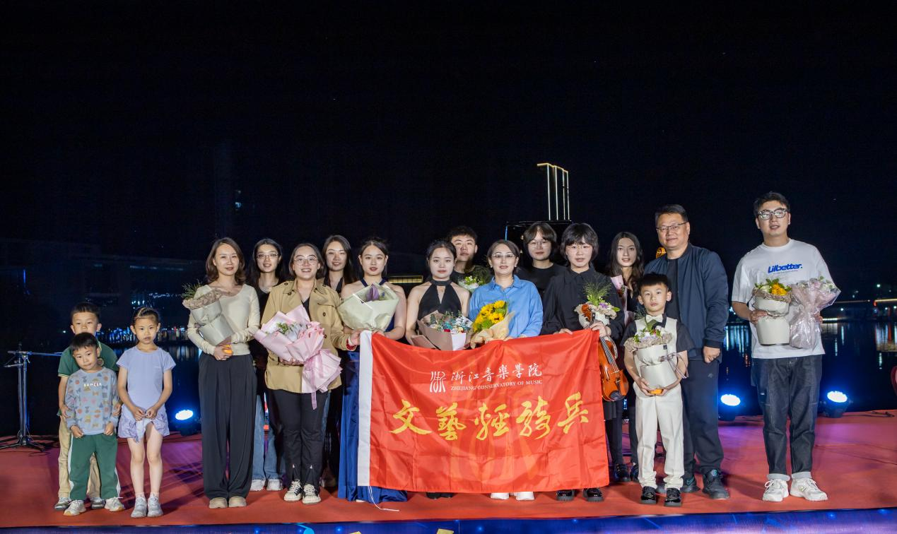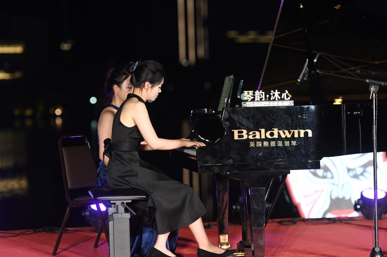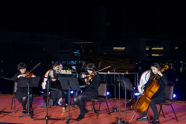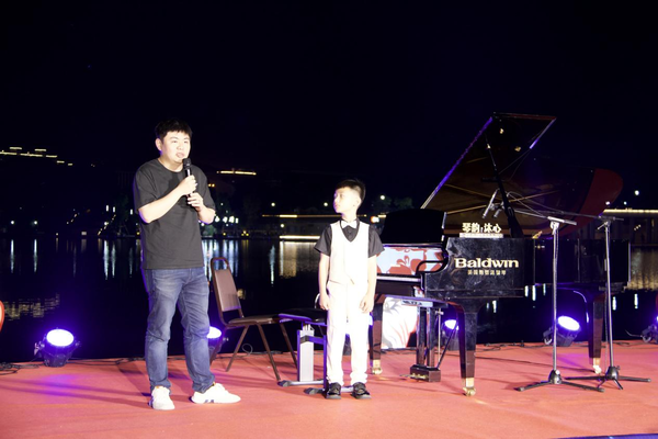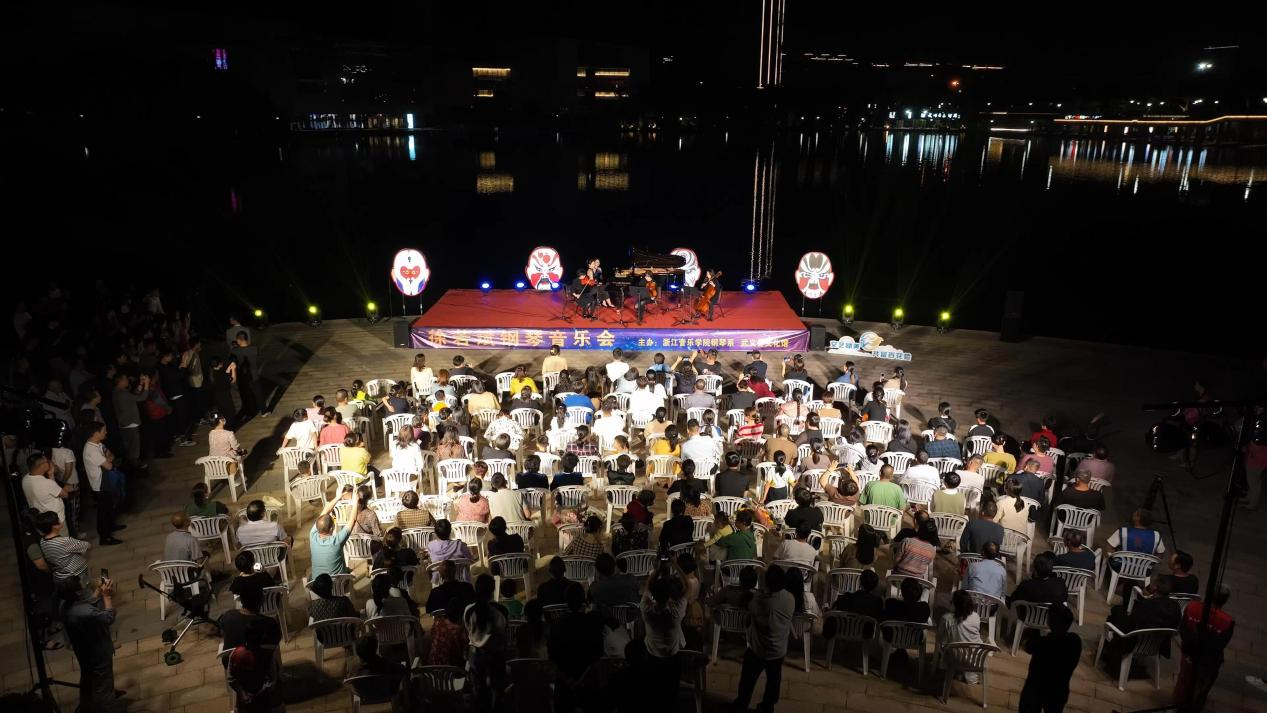 此次活動由浙江音樂學院鋼琴系、武義縣文化館主辦,演奏場地選在市民廣場音樂驛站旁的湖面上,波光粼粼倒映著交錯的燈光,悠揚的樂聲伴隨晚風飄蕩,盡顯浪漫氣息。音樂會主奏由鋼琴系武義籍學生徐若斌、徐若珂等擔任,在鋼琴獨奏曲《瀏陽河》中拉開帷幕,包含了《舞狂》《春舞》等中國近現(xiàn)代作品,以及《茉莉花》《彩云追月》《梁祝》等觀眾們耳熟能詳?shù)那?,更有音樂大師莫扎特和勃拉姆斯的鋼琴四重奏。鋼琴系副教授黃翔還現(xiàn)場為當?shù)氐匿撉賽酆谜哌M行指導。音樂會雅俗共賞,在繼承、弘揚、傳播中華民族優(yōu)秀傳統(tǒng)文化、展現(xiàn)中國本土音樂文化的同時,也讓百姓體驗了中西音樂文化交融的魅力。后陳村副書記陳軍表示,這是當?shù)匕傩盏谝淮稳绱私嚯x感受古典音樂魅力,希望將來有更多便捷欣賞專業(yè)演出的機會。