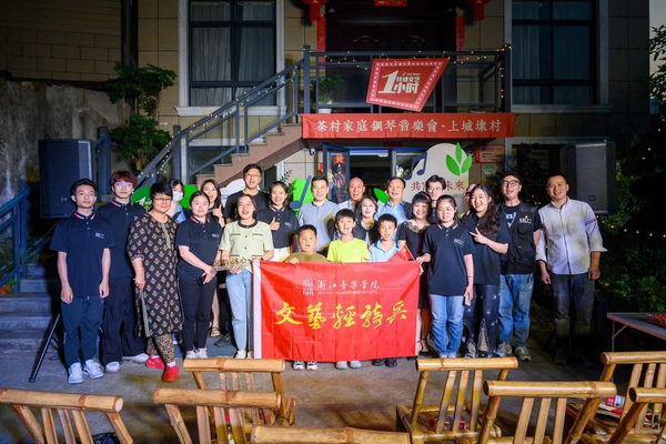 5月19日晚,暮色籠罩在茶園,一場(chǎng)浪漫的鋼琴音樂會(huì),在杭州市轉(zhuǎn)塘街道上城埭村的一間庭院里啟幕。在充滿家庭氛圍的庭院內(nèi),鋼琴系“文藝輕騎兵”將高雅藝術(shù)送到村民群眾身邊,與上城埭再次攜手共赴這場(chǎng)“共富”之約。