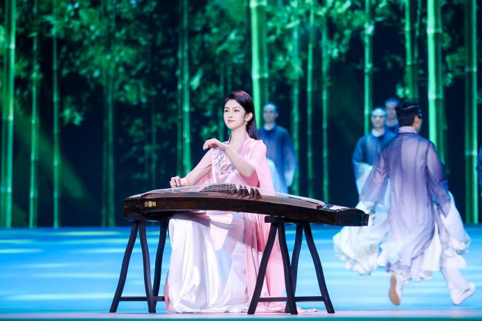 《奮進(jìn)潮聲今為盛》以熱情與豪情點燃了現(xiàn)場氛圍,鼓點明快、琴聲錚錚,“奮進(jìn)潮聲今為盛,踔厲奮發(fā)敢為先”,奮斗的激情猶如澎湃的錢江大潮,磅礴豪邁,震動天地。絲綢主題秀《絲路綿長》中,在優(yōu)美琴聲的襯托下,絲綢化為溫潤的紐帶,將中華的文明和精神凝結(jié)成一幅熠熠閃光的畫卷。