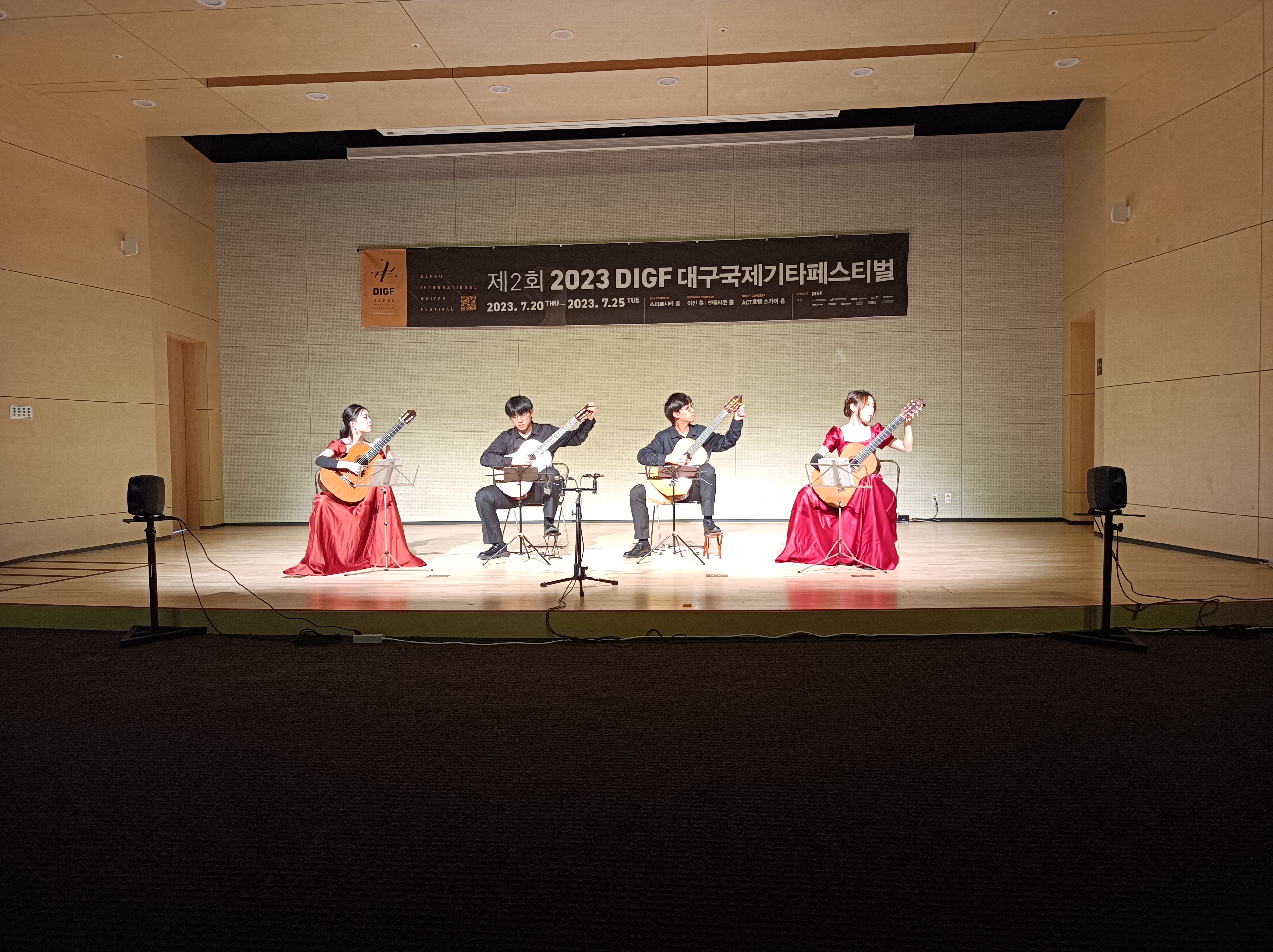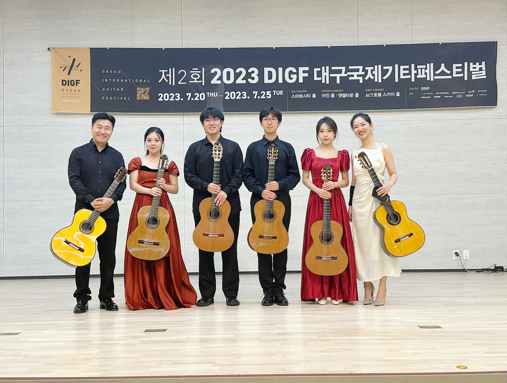 7月20日至25日,學(xué)院流行音樂(lè)系古典吉他專業(yè)師生受邀參加第二屆大邱國(guó)際吉他藝術(shù)節(jié)暨國(guó)際吉他比賽。