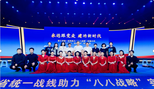 7月31日,“永遠(yuǎn)跟黨走 建功新時代”——浙江省統(tǒng)一戰(zhàn)線助力實施“八八戰(zhàn)略”20周年“之江同心·經(jīng)典展示”活動在杭舉行。學(xué)校國樂系教師、九三學(xué)社社員盛秧和翡翠箏團受邀參加了本次演出。