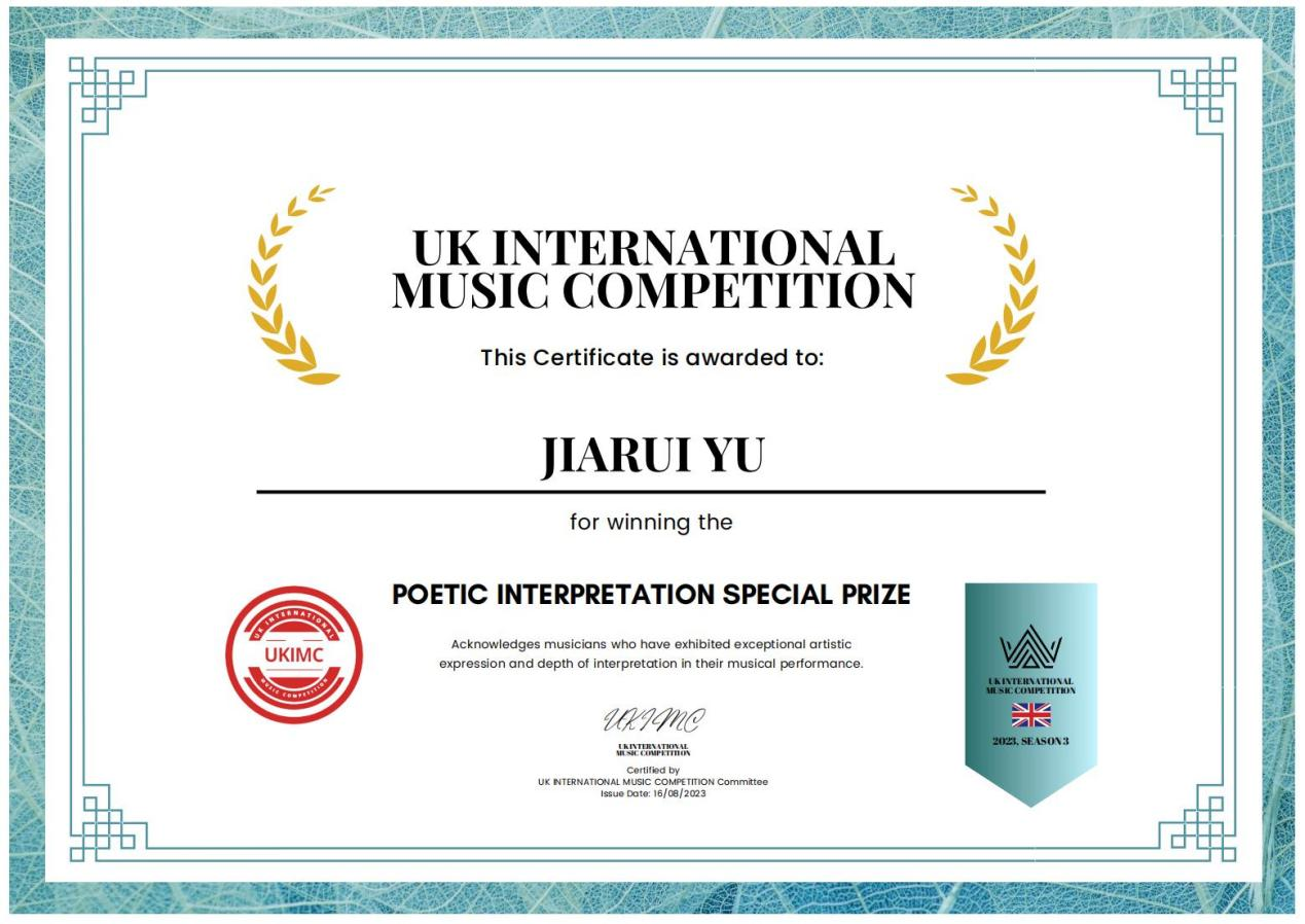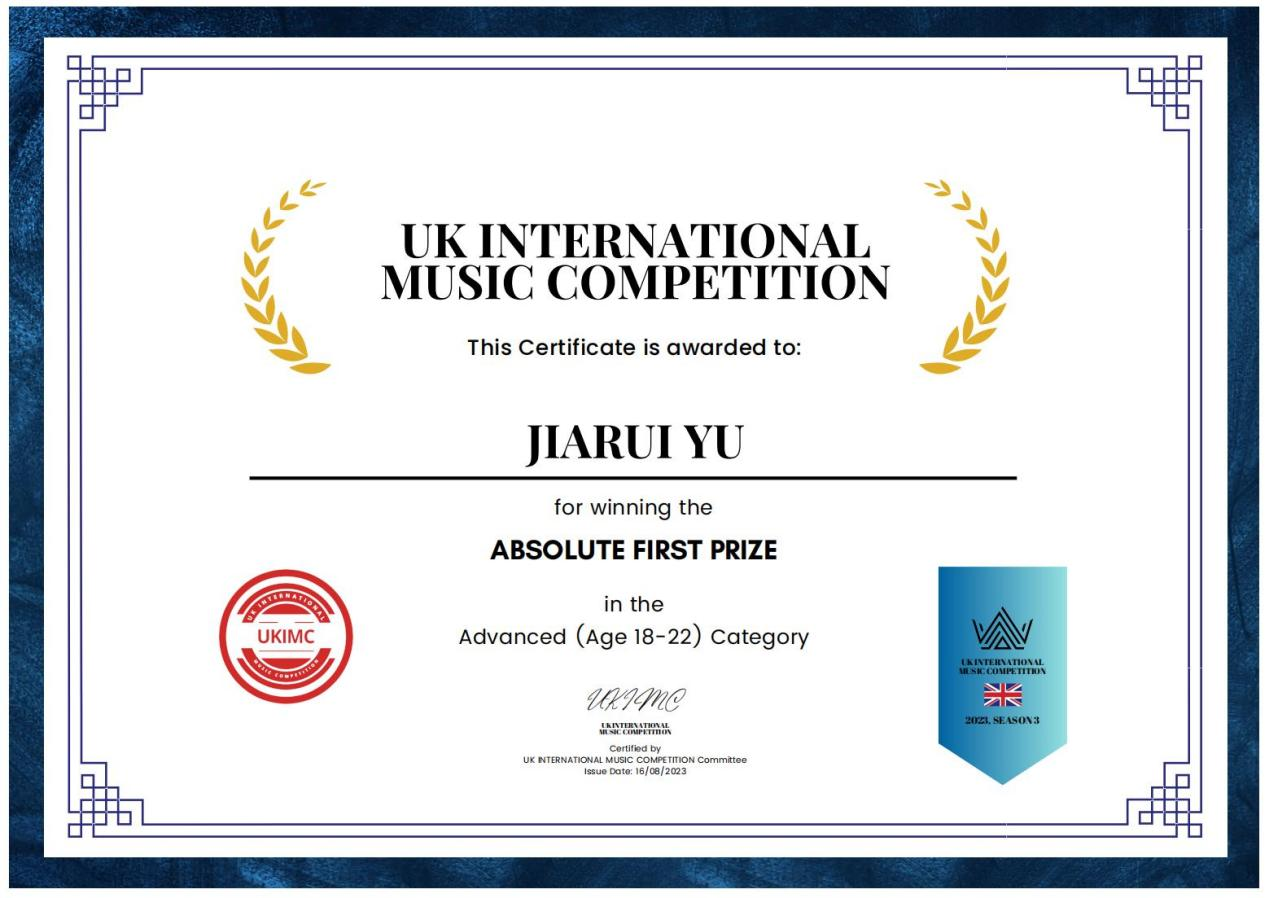 近日,2023年英國(guó)國(guó)際音樂比賽(UK International Music Competition)第三賽季比賽落下帷幕,我校作曲與指揮系俞嘉睿同學(xué)(指導(dǎo)教師:作曲與指揮系副教授高?。s獲專業(yè)組及高級(jí)組兩個(gè)組別本屆賽事最高獎(jiǎng)項(xiàng)白金獎(jiǎng)項(xiàng)(絕對(duì)一等獎(jiǎng)),同時(shí)榮獲組委會(huì)優(yōu)秀特別獎(jiǎng)。