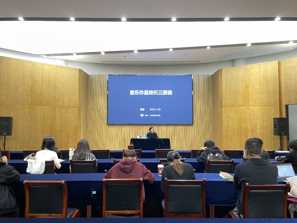 為提高師生的音樂版權保護意識,加強音樂作品版權知識的普及與推廣,11月6日下午,由社會合作中心、科研處舉辦的“音樂作品版權”學術季主題講座在行政樓103會議室舉辦。講座邀請浙江一墨律師事務所主任黃娟律師主講,各院系師生代表參加。