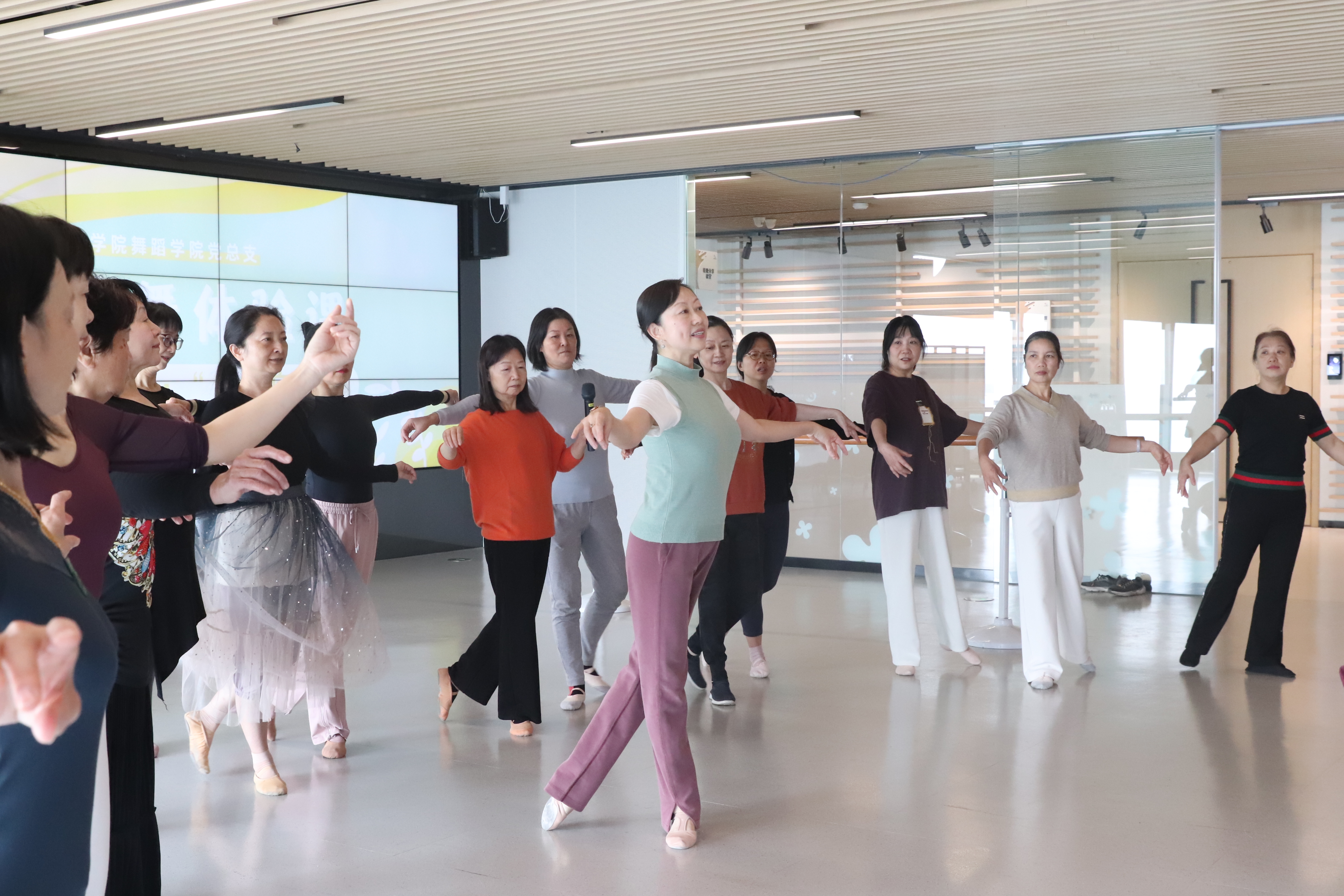 近日,由民族民間舞教研室青年教師孟婷婷為廣大市民開展藏族舞蹈教學。她耐心指導市民們學習退踏步、抬踏步、連三步、七下退踏步等藏族舞蹈中堆諧的元素,細致講述藏族舞蹈的特點,以及藏族傳統(tǒng)舞蹈背后的文化內(nèi)涵。芭蕾舞教研室主任、國家二級演員周瑾圍繞芭蕾舞的五個腳位、蹲、立以及芭蕾演員的謝幕敬禮動作等,為廣大市民開展芭蕾舞教學。為了讓市民能夠近距離感受古典芭蕾之美,舞蹈學院芭蕾舞專業(yè)的學生還為市民們表演了經(jīng)典芭蕾舞劇《海盜》三幕片段。