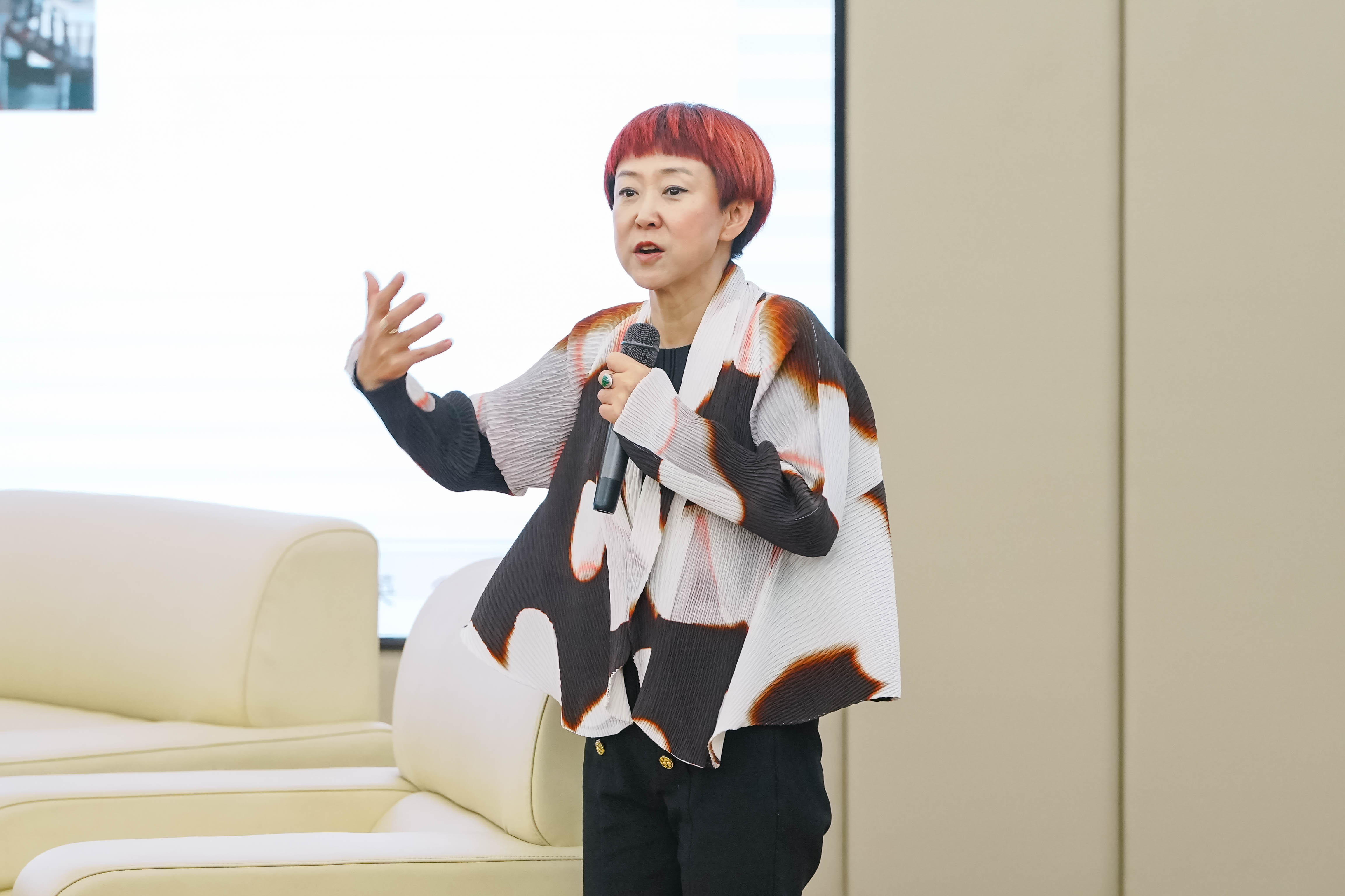 一部好的戲劇離不開好的舞美設(shè)計,舞臺美術(shù)是戲劇藝術(shù)的重要組成部分?!都摇返奈杳涝O(shè)計精巧獨(dú)特,在結(jié)合實(shí)物置景的同時,也能夠推動人物感情增強(qiáng)戲劇沖突,將劇中所想表達(dá)的戲劇場景更具象化地為觀眾展現(xiàn)出來。邊文彤教授向同學(xué)們講起了去四川古鎮(zhèn)采風(fēng)時的感受,同時激情澎湃、生動傳神地描述了她所設(shè)計的戲劇空間與布景,如何與演員的表演相互配合完成情境表達(dá)和人物塑造的處理等觀念。
