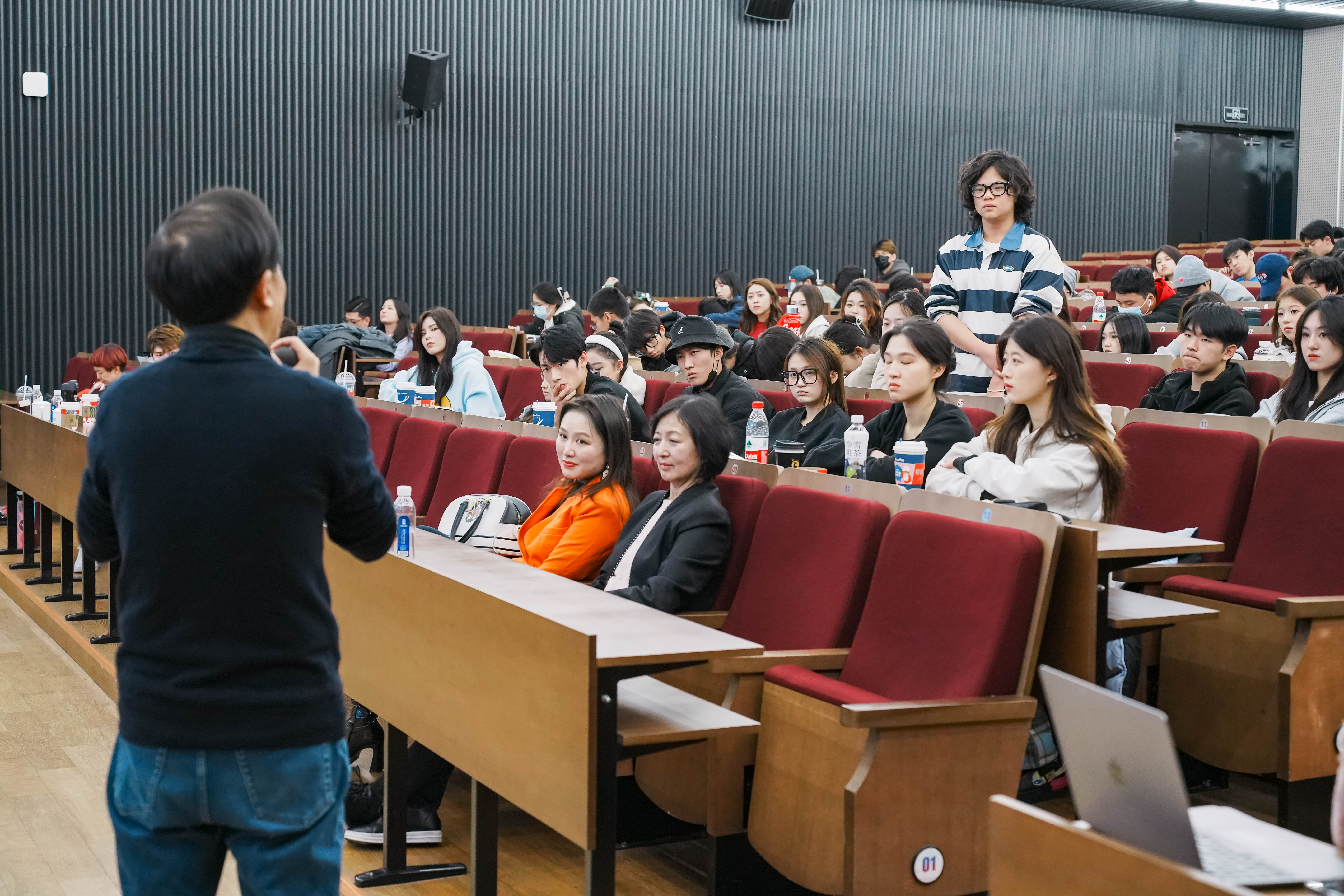 最后的互動環(huán)節(jié)更加輕松親切,同學(xué)們紛紛提問,教授們詳細(xì)解答,熱情鼓勵,共同探討了電音樂如何與傳統(tǒng)音樂融合,民國題材怎么跟現(xiàn)代元素結(jié)合,如何正確使用音樂劇唱法等問題。交流活動現(xiàn)場歡聲笑語,掌聲如潮,反響熱烈,同學(xué)們收獲滿滿。