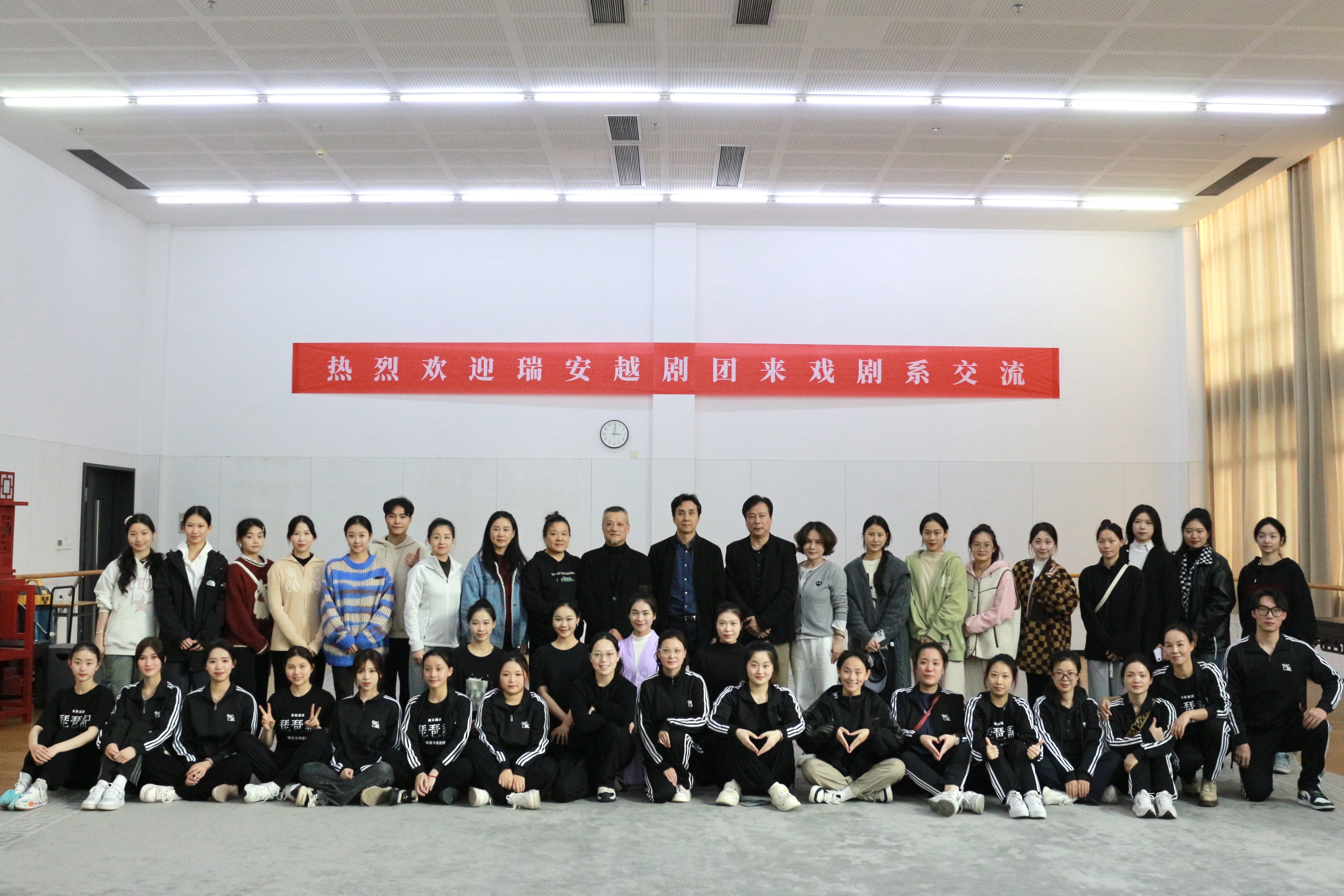 兼容并蓄,博采眾?。為提升戲劇系學(xué)子的舞臺(tái)表演能力,幫助學(xué)生了解專業(yè)院團(tuán)的演出水準(zhǔn)和戲曲技藝的發(fā)展動(dòng)態(tài),11月23日下午,戲劇系邀請(qǐng)教學(xué)實(shí)踐基地瑞安越劇團(tuán)團(tuán)長(zhǎng)蔡麗雅及指導(dǎo)老師戴華君一行來戲劇系進(jìn)行專業(yè)交流。
