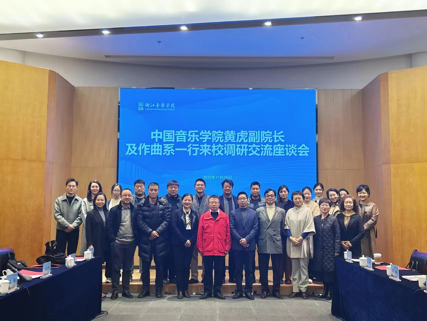 11月28日,中國音樂學(xué)院黨委常委、副院長黃虎教授,作曲系主任高纓教授等12位教師來我院作曲與指揮系開展交流調(diào)研。我院副院長、黨委委員汪洋教授,作曲與指揮系主任安承弼,黨總支副書記、副主任、招生辦主任唐大林,副主任王云飛等12位教師參加了交流會。