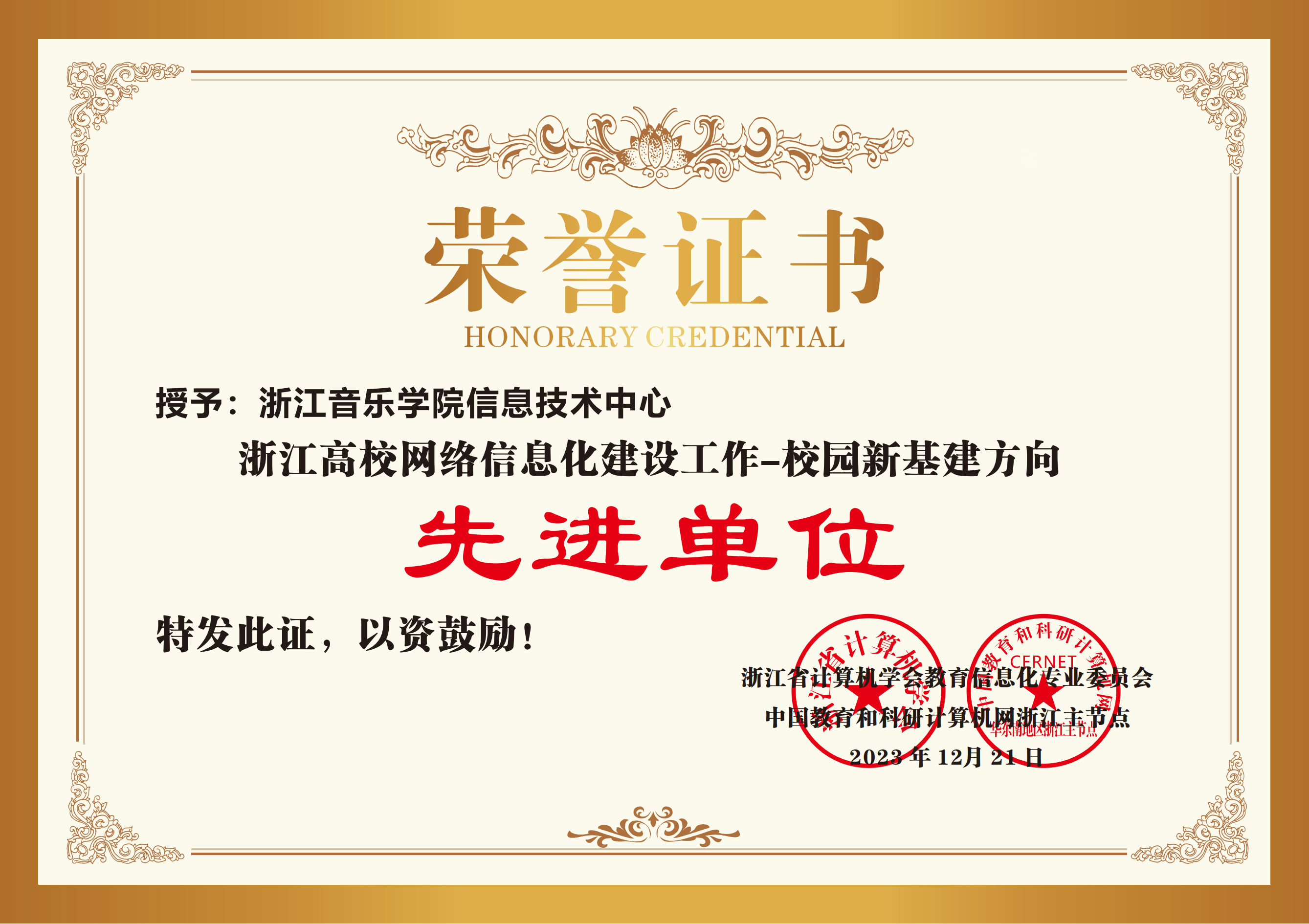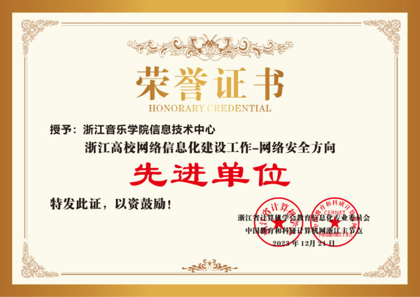 近日,浙江省計算機學(xué)會教育信息化專業(yè)委員會、中國教育和科研計算機網(wǎng)浙江省主節(jié)點聯(lián)合評選了2023年浙江高校網(wǎng)絡(luò)信息化建設(shè)先進(jìn)單位。學(xué)院教務(wù)處、學(xué)生處分別榮獲“數(shù)字治理方向先進(jìn)單位”,信息技術(shù)中心榮獲“網(wǎng)絡(luò)安全方向先進(jìn)單位”和“校園新基建方向先進(jìn)單位”。