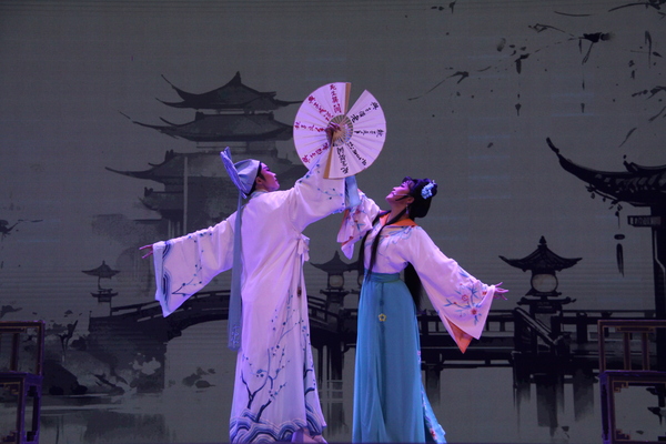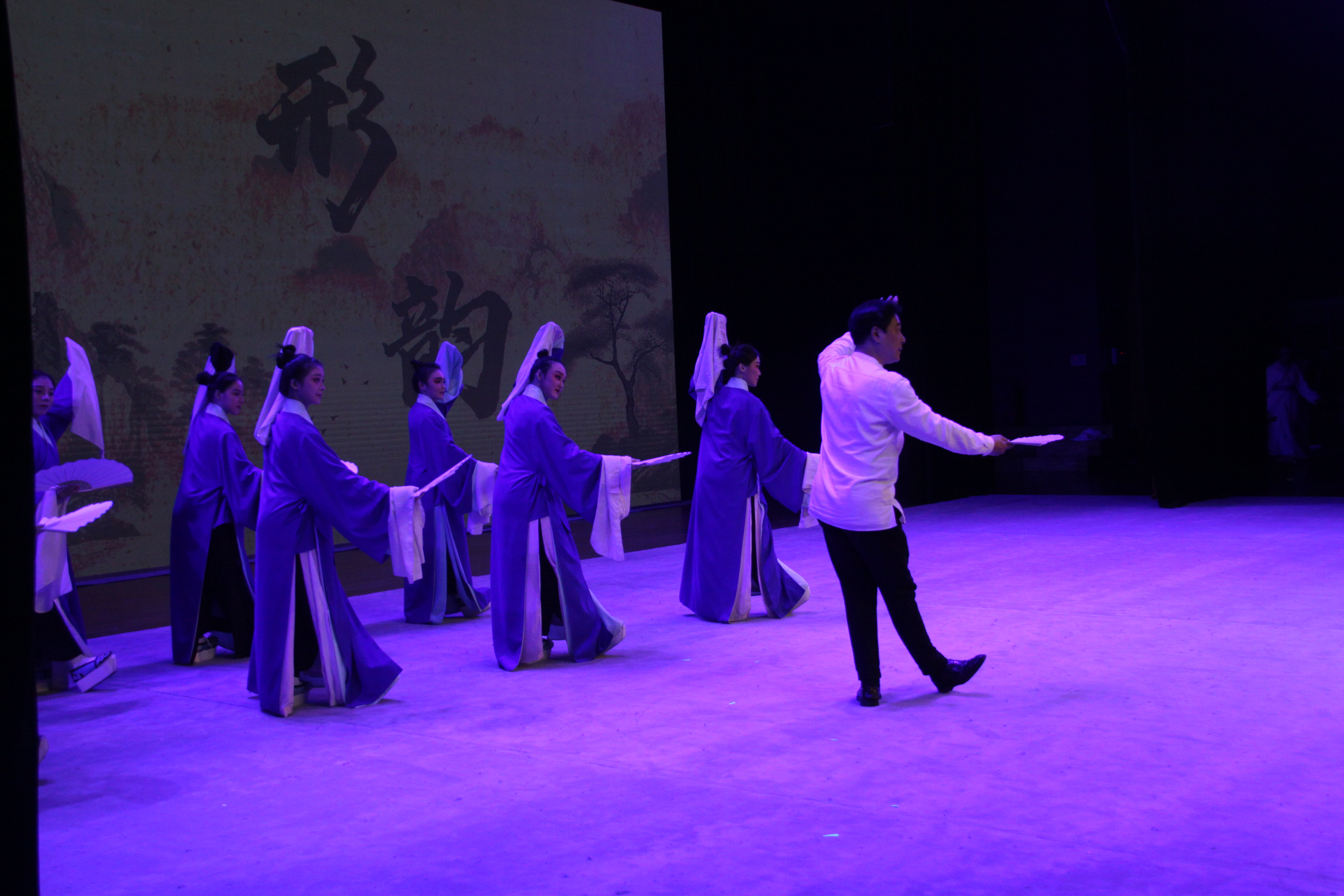 《形·韻》是2022年學(xué)院戲曲表演教研室打造的一臺(tái)以形體為主題的教學(xué)成果展示,是踐行國家一流專業(yè)、省級(jí)一流專業(yè)、省級(jí)一流課程建設(shè)過程中的重要體現(xiàn)。演出分為《序》《形》《韻》《尾聲》四個(gè)部分,“形”通過師生同臺(tái)逐一展示了小生、老生、旦角、武生的身韻之美,同時(shí)也傳遞著戲曲千百年來“心口相傳”的使命;“韻”由昆曲《寶劍記·夜奔》、越劇《梁祝·回十八》《祥林嫂·洞房》《梁祝·樓臺(tái)會(huì)》等幾個(gè)劇目片段組成,充分展示了戲曲的藝術(shù)精髓。
