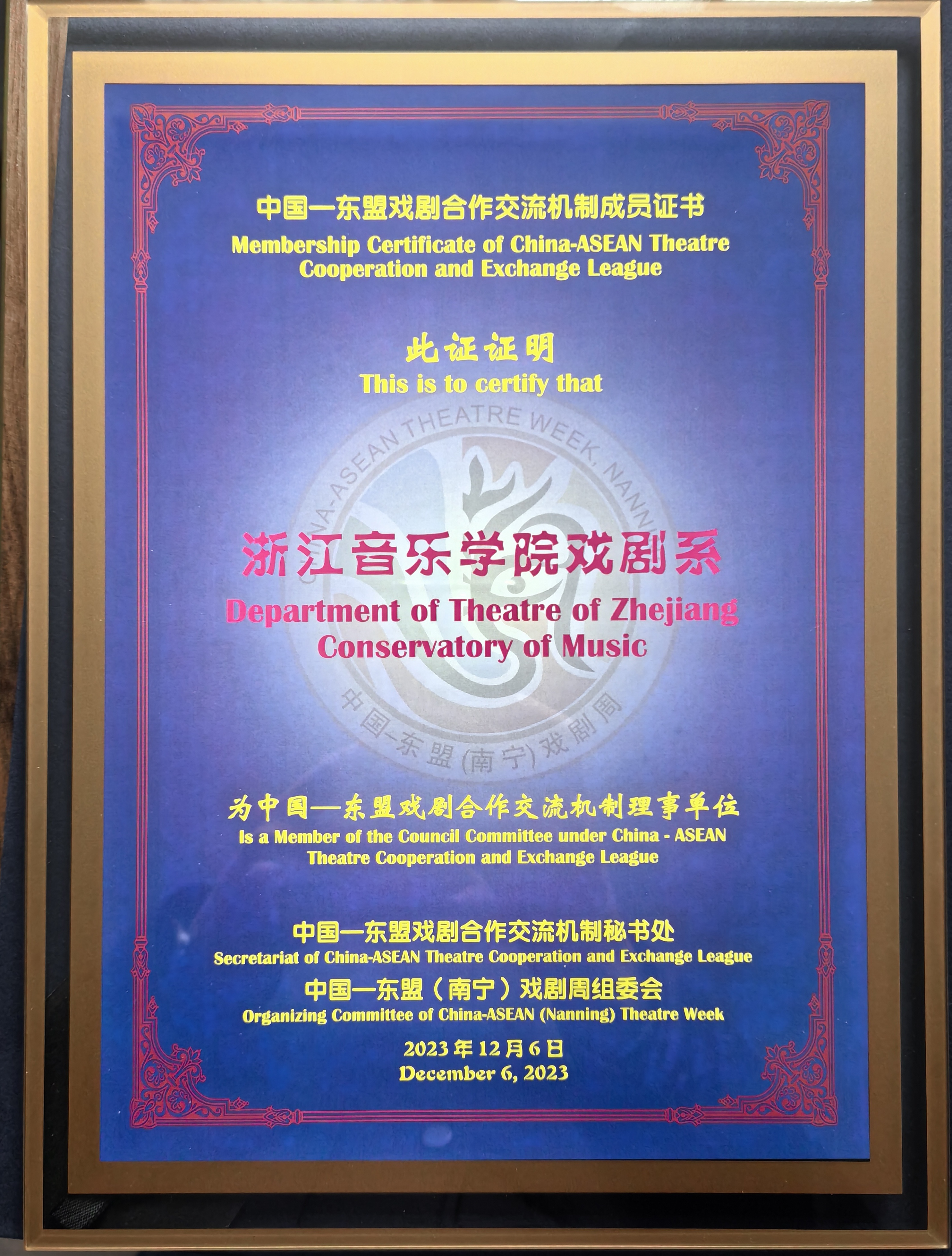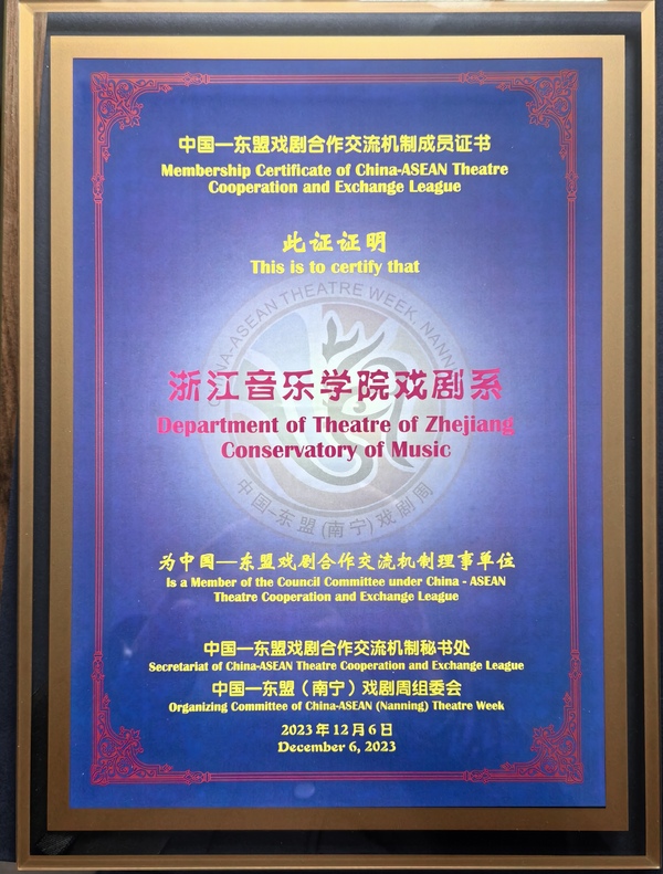 《形·韻》獲得了第十屆中國——東盟(南寧)戲劇周“優(yōu)秀劇目”獎(jiǎng),越劇演員201陳俊宏、越劇演員211班陳佳賢獲得“優(yōu)秀演員”獎(jiǎng)。同時(shí),戲劇系黨總支書記、副主任安怡教授,學(xué)院特聘研究員戲劇學(xué)研究所海震教授、張永明副教授應(yīng)邀參加了“凝聚與展望——中國——東盟(南寧)戲劇周十周年交流座談會(huì)。安怡教授代表戲劇系簽署了加入中國——東盟戲劇合作交流機(jī)制的協(xié)議,接受理事單位證書。
