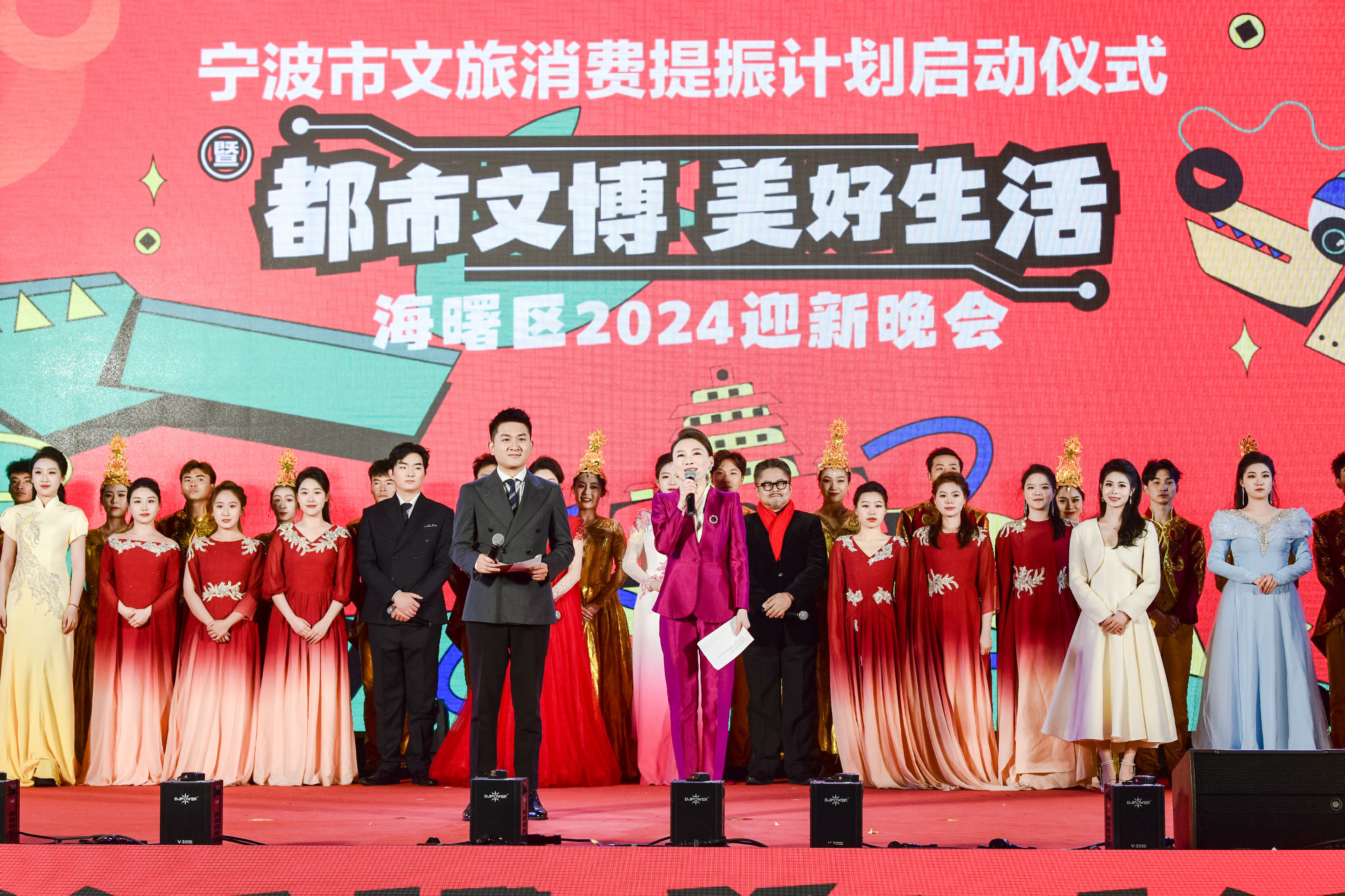 12月31日晚,由浙音樂典文化執(zhí)行的寧波市文旅消費(fèi)提振計(jì)劃啟動(dòng)儀式暨“都市文博 美好生活”海曙區(qū)2024迎新晚會(huì)在寧波鼓樓舉行。本次活動(dòng)由海曙區(qū)委政府主辦,海曙區(qū)委宣傳部、區(qū)商務(wù)局、區(qū)文廣旅體育局等部門承辦。浙江音樂學(xué)院黨委副書記王均寅,寧波市政協(xié)副主席葉劍鳴,海曙區(qū)委副書記、區(qū)長葉枝利以及市區(qū)兩級、鼓樓街道和浙音樂典文化的相關(guān)負(fù)責(zé)人出席本次活動(dòng)。同時(shí)活動(dòng)現(xiàn)場還邀請到全國勞動(dòng)模范、全國民族團(tuán)結(jié)進(jìn)步先進(jìn)個(gè)人、浙江省最美志愿者、省五星級僑胞之家、寧波好人、青年工匠、最美家庭和鄉(xiāng)賢等代表。