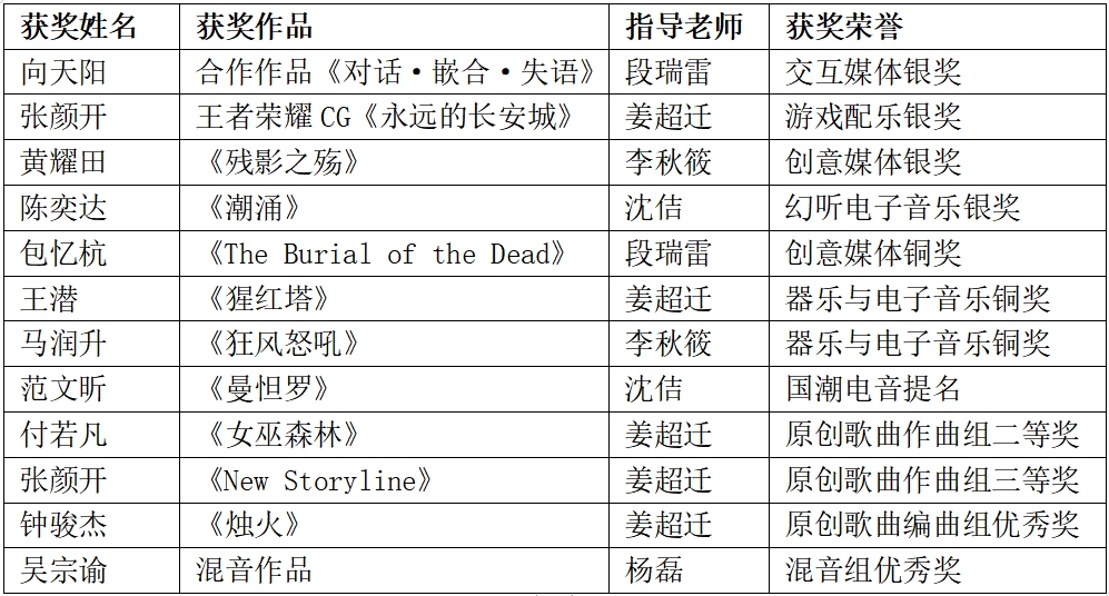 近日,第五屆丹尼獎(jiǎng)國(guó)際電子音樂(lè)比賽發(fā)布獲獎(jiǎng)名單。在經(jīng)過(guò)3輪激烈角逐之后,學(xué)院音樂(lè)工程系學(xué)子在全球參賽的近千部原創(chuàng)作品中脫穎而出,榮獲4銀、3銅等多項(xiàng)榮譽(yù)。