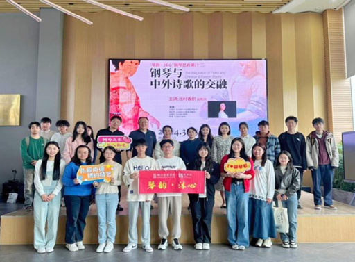 3月25日中午,“琴韻·沐心”鋼琴思政課(十二)——《鋼琴與中外詩歌的交融》在教師教學(xué)發(fā)展中心學(xué)術(shù)廳順利舉行。本場活動由鋼琴系北村香織副教授主講,研究生金雅玲、陳靖、王倩文(聲歌系)、鄭舒尹(聲歌系)助講演奏。鋼琴系負(fù)責(zé)人,教師黨支部書記,部分鋼琴系、聲歌系教師及鋼琴系大二、研一學(xué)生參加此次活動。