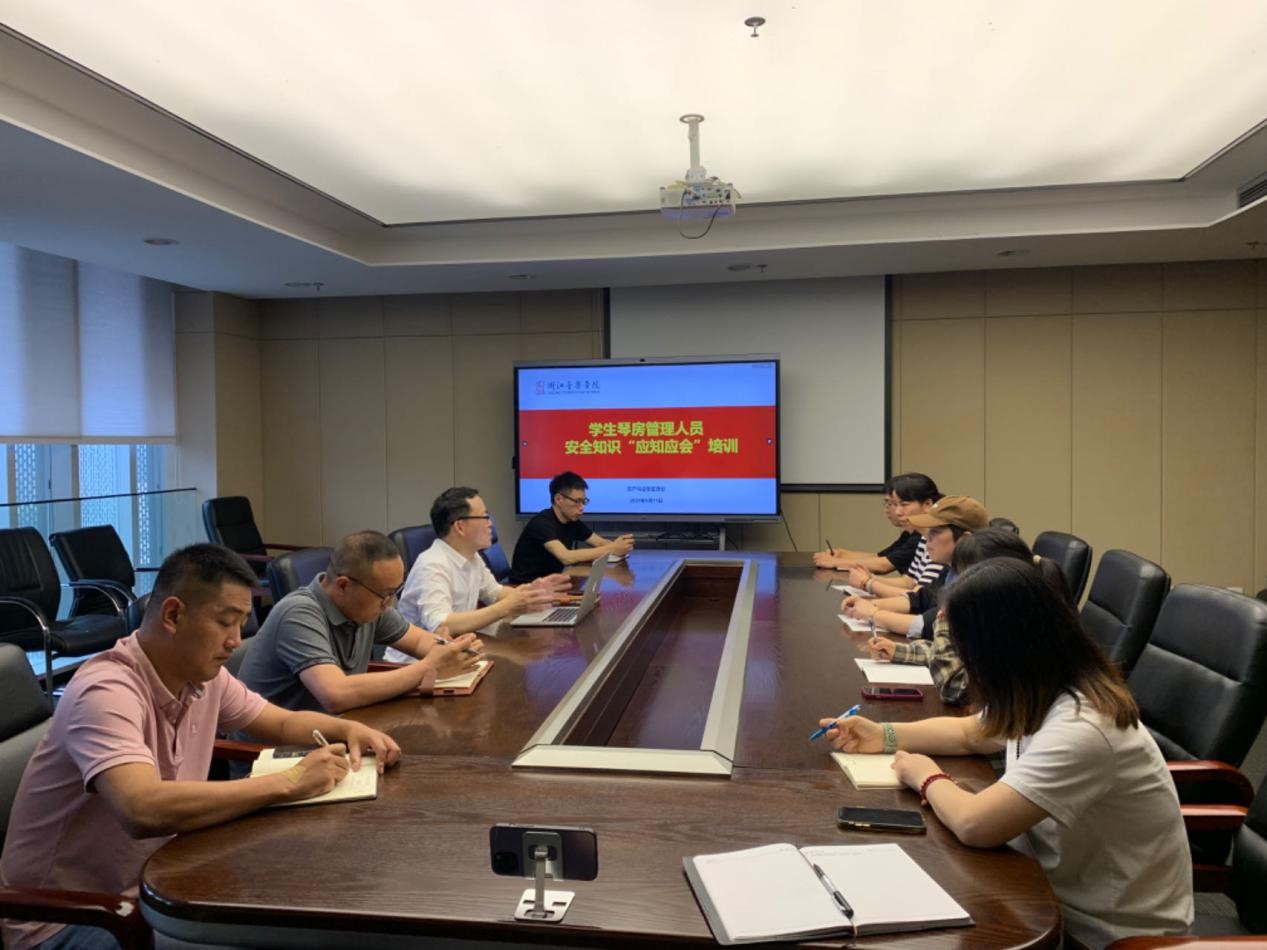 培訓(xùn)會(huì)上針對(duì)琴房管理工作實(shí)際問題展開了討論。最后,全體參會(huì)人員重新學(xué)習(xí)了《學(xué)生琴房突發(fā)事件應(yīng)急預(yù)案》,會(huì)議強(qiáng)調(diào),遇到可能發(fā)生的安全事件時(shí),首先要保持冷靜,要按照應(yīng)急預(yù)案要求,作出正確處置。