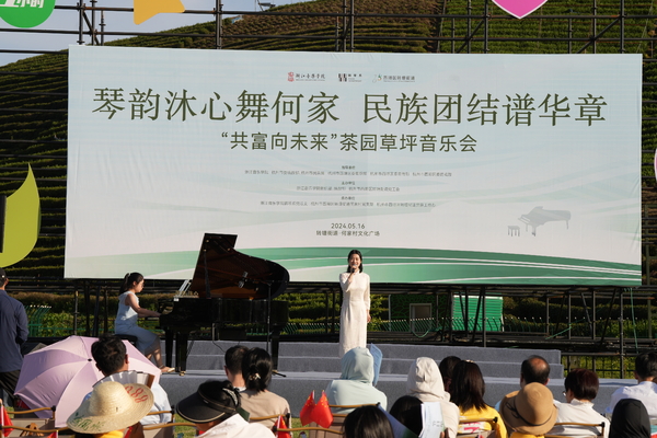 樂聲裊裊,茶香陣陣。5月16日傍晚,一場浪漫的草坪音樂會在西湖區(qū)轉(zhuǎn)塘街道何家村文化廣場拉開帷幕。來自浙江音樂學(xué)院的師生走出校園,在夕陽籠罩的茶園,為村民群眾帶來了“琴韻沐心舞何家 民族團(tuán)結(jié)譜華章”——“共富向未來”茶園草坪音樂會,將高雅藝術(shù)送到村民身邊。
