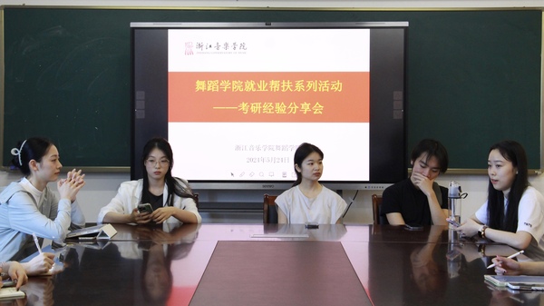 為深入推進(jìn)學(xué)風(fēng)建設(shè),培養(yǎng)學(xué)生嚴(yán)謹(jǐn)?shù)膶W(xué)習(xí)態(tài)度,營(yíng)造濃厚的考研氛圍,助力2025屆學(xué)子考研,5月24日中午,舞蹈學(xué)院舉辦“舞境至善”就業(yè)創(chuàng)業(yè)幫扶行動(dòng)之考研經(jīng)驗(yàn)分享會(huì),邀請(qǐng)徐浙嵐、余汶哲、秦樂(lè)兒、盛曉葉子、鄭涵5位同學(xué)為有考研意向的學(xué)弟學(xué)妹分享自己的考研經(jīng)歷。