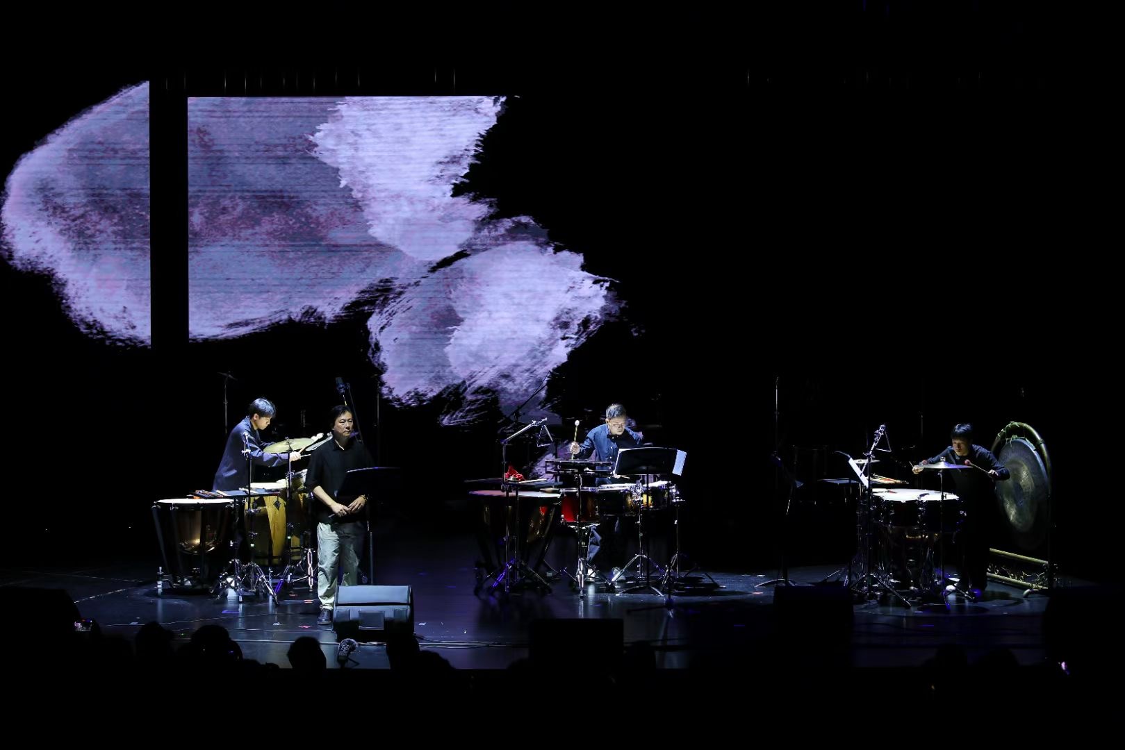 本場音樂會涵蓋傳統(tǒng)經(jīng)典樂曲和當代原創(chuàng)作品,并通過跨界融合等方式創(chuàng)造聽覺、視覺、聯(lián)覺三位一體的新型舞臺表現(xiàn)形式。開場曲目為瞿小松作曲的《定風波》,靈感來源于蘇軾的同名詞作,結(jié)合包括傳統(tǒng)的中國打擊樂器和西方現(xiàn)代打擊樂器在內(nèi)的多種打擊樂器,通過豐富的音色和節(jié)奏變化,創(chuàng)造出多層次的聽覺體驗,展現(xiàn)了豐富的表現(xiàn)形式和藝術(shù)內(nèi)涵。隨后上演的《sand box》充滿互動性、趣味性,4位演奏者扮作超級馬里奧演出,以靈動表演和精彩演奏調(diào)動現(xiàn)場熱烈氣氛。作為本場音樂會主打作品,《和合》運用結(jié)合了聽覺、視覺、聯(lián)覺三位一體的新型舞臺表現(xiàn)形式,用LED視頻配合多樣的表現(xiàn)手法和高深的演奏技巧,呈現(xiàn)了人、自然、社會交融的一系列深刻內(nèi)涵。