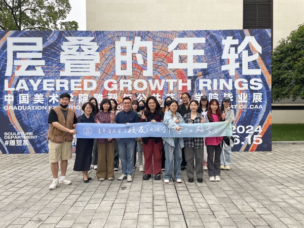 師生校友一行來到全山石藝術(shù)中心,參觀考察中國美術(shù)學(xué)院“世界樹—層疊的年輪”畢業(yè)展。展覽匯聚了來自中國美院雕塑與公共藝術(shù)學(xué)院的167位畢業(yè)生的創(chuàng)意之作,涉及雕塑設(shè)計(jì)、數(shù)字空間、聲音裝置、生態(tài)創(chuàng)新等領(lǐng)域,展現(xiàn)了當(dāng)代青年藝術(shù)家對(duì)時(shí)代精神的獨(dú)特解讀與藝術(shù)語言的創(chuàng)新表達(dá)。