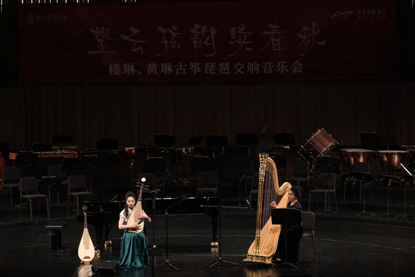 整場音樂會,貫穿中西、融通古今,既有傳統(tǒng)之經(jīng)典,又有時代之新編,有古曲之韻律,兼新作之潮流,其中《瓷韻東方》《樂在其中》兩部作品為首發(fā)首演,《望云賦》《云想花想》為新編配版首演。校友樓琳曾榮獲第13屆中國音樂金鐘獎古箏比賽總決賽入圍獎、“新松人才”浙江省青年演奏員大賽民族器樂A組一等獎、浙江省第二屆青年古箏演奏家大賽金獎等榮譽(yù),并首演交響樂版《蘭亭》、民族管弦樂版《萬里無云》等箏樂作品;黃琳多次作為特邀琵琶演奏家參與中央芭蕾舞團(tuán)大型芭蕾舞劇《沂蒙》、“相約維也納——奧地利中國藝術(shù)節(jié)”等演出。兩位青年藝術(shù)人才作為Z世代的民族音樂新生代,展現(xiàn)了中國民族音樂的生機(jī)活力與未來。“創(chuàng)新”“融合”“年輕”成為此次音樂會的最大特色亮點(diǎn)。
