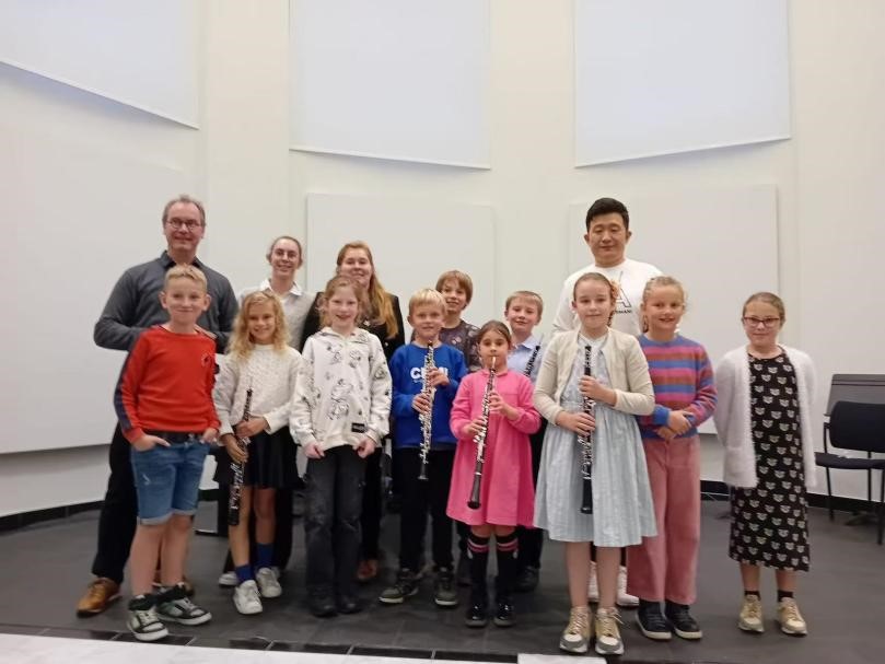 結(jié)束蒙斯皇家音樂學(xué)院的行程后,李佳胤來到了位于布魯日的托爾豪特藝術(shù)學(xué)院。在這里,他與學(xué)校的孩子們進(jìn)行了一場(chǎng)別開生面的互動(dòng)教學(xué)。與蒙斯皇家音樂學(xué)院的大學(xué)和研究生不同,托爾豪特藝術(shù)學(xué)院的孩子們年齡較小,但他們對(duì)音樂的熱愛絲毫不減。在互動(dòng)教學(xué)中,李佳胤針對(duì)孩子們的年齡特點(diǎn),采用了生動(dòng)有趣的教學(xué)方法。他耐心地指導(dǎo)孩子們演奏雙簧管,分享音樂之美,通過與孩子們的交流,李佳胤對(duì)當(dāng)?shù)匾魳方逃占暗姆绞胶托问接辛巳碌恼J(rèn)識(shí)和了解,并與學(xué)校的老師在專業(yè)以及培養(yǎng)模式等方面進(jìn)行了深入的交流。李佳胤表示,此次訪問讓他對(duì)歐洲音樂教育有了更深入的認(rèn)識(shí),為今后的教學(xué)和研究積累了寶貴經(jīng)驗(yàn)。