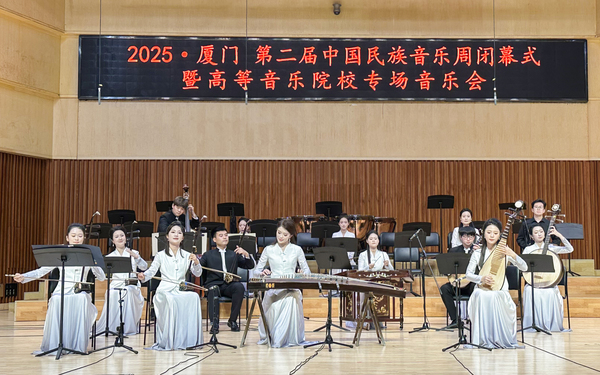 春和景明,鷺島樂(lè)韻正當(dāng)時(shí)。3月26日,浙音民族室內(nèi)樂(lè)團(tuán)受邀參加“2025·廈門(mén) 第二屆中國(guó)民族音樂(lè)周”閉幕式暨高等音樂(lè)院校專(zhuān)場(chǎng)音樂(lè)會(huì)。本次活動(dòng)由中央音樂(lè)學(xué)院和廈門(mén)市人民政府主辦,匯聚了全國(guó)頂尖的民族音樂(lè)家,旨在通過(guò)音樂(lè)會(huì)、專(zhuān)家講座及研討會(huì)等形式,弘揚(yáng)中華優(yōu)秀傳統(tǒng)音樂(lè)文化,促進(jìn)民族音樂(lè)的交流與推廣。