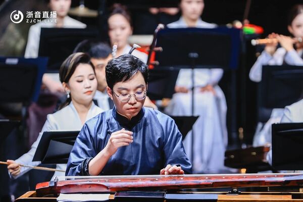 音樂會(huì)在浙派傳人徐樂奇演繹的古琴名曲《流水》中拉開序幕。在王甫建教授精心編配下,這首傳世經(jīng)典煥發(fā)出新的“藝術(shù)光彩”。古琴與樂隊(duì)的完美配合,既保留了古琴特有的“空靈意境”,又增添了層次豐富的音響效果。徐樂奇以精湛的技法,帶領(lǐng)觀眾穿越時(shí)空,感受“高山流水遇知音”的意境,贏得全場(chǎng)經(jīng)久不息的掌聲。