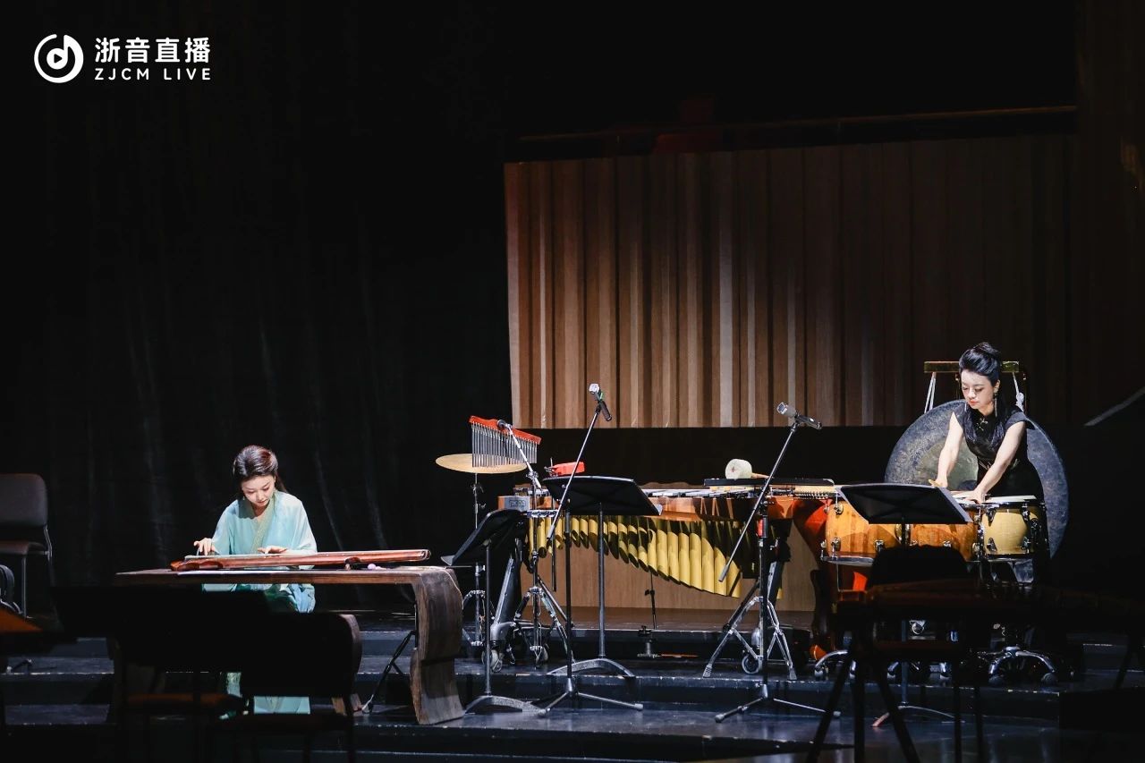 曲目《弦鼓談》由中央音樂學(xué)院古琴新秀亓淼與國(guó)樂系青年教師劉夢(mèng)聯(lián)袂演繹,上演了一出充滿詩(shī)意的對(duì)話。這首曲目由王甫建教授創(chuàng)作,用獨(dú)特的"琴鼓對(duì)話"形式重構(gòu)了傳統(tǒng)音樂的時(shí)空維度,古琴悠然雅致的音色與打擊樂器豐富的音色和力度變化結(jié)合,表現(xiàn)出樂觀豁達(dá)的人生哲理。二者之間相互對(duì)話唱和,表達(dá)“張弦述懷,擊鼓明志”的思想境界。