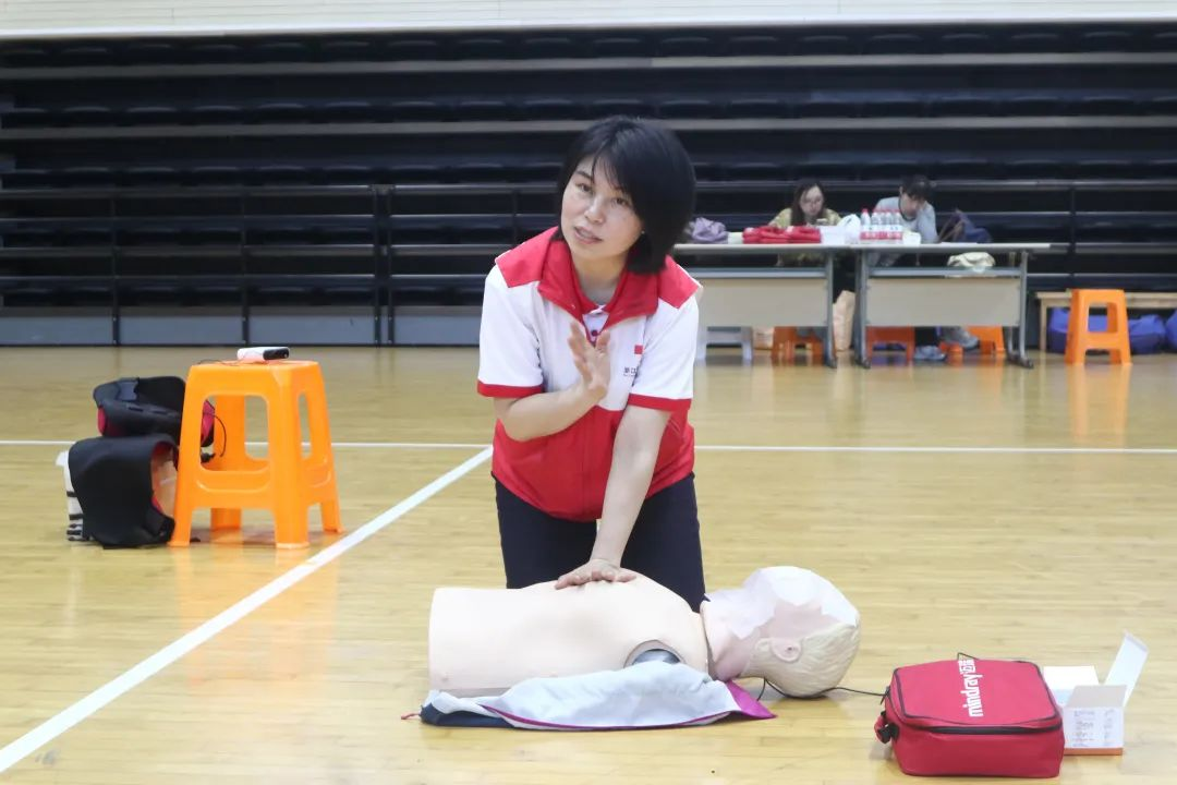 在講解心肺復(fù)蘇(CPR)這一重要急救技能時(shí),講師團(tuán)隊(duì)準(zhǔn)備了專業(yè)的模擬人教具及AED,邊講解邊演練,耐心指導(dǎo)學(xué)員現(xiàn)場(chǎng)反復(fù)練習(xí)。師生們積極踴躍參與,從按壓的位置、力度,到人工呼吸的操作要點(diǎn),都一絲不茍地學(xué)習(xí)掌握。