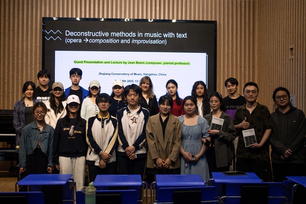 此次活動(dòng)不僅拓寬了學(xué)生們對作曲本體與跨媒介表達(dá)的理解,也進(jìn)一步加深了浙音與維也納音樂與藝術(shù)私立大學(xué)之間的持續(xù)深化合作,開啟了未來跨文化作曲教學(xué)與表演合作的新可能,讓音樂成為兩種文化共同追問“人類經(jīng)驗(yàn)”的新路徑。值得一提的是,作為學(xué)院與MUK合作的重要成果,我校兩名本科生加入Jean Beers教授主持的“Suite Mixture”跨文化表演與作曲合作項(xiàng)目,項(xiàng)目成果還于日前在南京大學(xué)主辦的國際學(xué)術(shù)研討會(huì)“(音樂)戲劇的文化轉(zhuǎn)移:中國與奧地利”上正式發(fā)布并演出。
