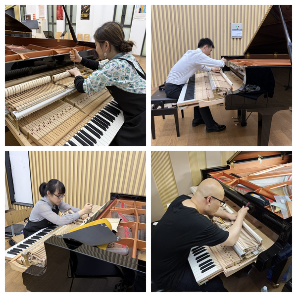 4月28日,雅馬哈樂器音響(中國)投資有限公司鍵盤樂器事業(yè)部教育推進(jìn)科科長周宇炫、鋼琴服務(wù)科科長江崎裕子率專業(yè)技師團(tuán)隊,聯(lián)合杭州雅圣樂器有限公司特級技師一行,赴學(xué)院開展售后回訪及鋼琴維護(hù)保養(yǎng)工作。學(xué)院資產(chǎn)與設(shè)備管理處副處長徐煦及相關(guān)負(fù)責(zé)人接待,雙方就樂器維保、校企合作等議題展開深入交流。