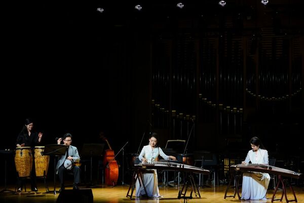 羅小慈創(chuàng)作的雙古箏與打擊樂作品《綻放》,由董靜怡、張一鳴、馬麗、蘇科源共同奏響。樂曲以傳統(tǒng)箏曲《寒鴉戲水》的旋律為開篇,通過打擊樂的節(jié)奏變換與古箏創(chuàng)新性的演奏,實現(xiàn)了傳統(tǒng)韻味的現(xiàn)代表達。