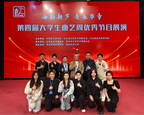 為深入學(xué)習(xí)貫徹習(xí)近平文化思想,推動(dòng)中華優(yōu)秀傳統(tǒng)文化在校園的傳承與創(chuàng)新發(fā)展,豐富校園文化內(nèi)涵,提升大學(xué)生審美情趣和藝術(shù)品格,5月10日,由中國曲藝家協(xié)會(huì)、山東省文學(xué)藝術(shù)界聯(lián)合會(huì)、中共青島市委宣傳部主辦的“曲韻新聲 青春華章”——第四屆大學(xué)生曲藝周優(yōu)秀節(jié)目展演走進(jìn)青島農(nóng)業(yè)大學(xué)和青島科技大學(xué)。我校戲劇系優(yōu)秀原創(chuàng)作品紹興蓮花落《野蜂飛舞》與說唱節(jié)目《后悔來不及》入選展演名單。