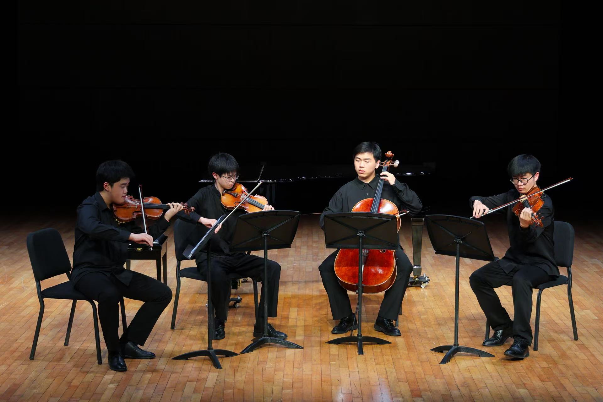 隨后,約瑟夫·海頓的《D大調(diào)弦樂四重奏》(Op.20 No.4)由“繁星四重奏”傾力呈現(xiàn)。第一小提琴徐朗奕、第二小提琴黃紹煊、中提琴范書銘、大提琴趙憶南(指導(dǎo)教師:張源)以超越年齡的成熟技藝,駕馭了這部結(jié)構(gòu)宏大的四樂章作品——從激情澎湃的“很快的快板”,到深情的“柔板”,再到充滿吉普賽風(fēng)情的“小快板”,直至最后活力四射的“詼諧急板”。作為室內(nèi)樂學(xué)院首屆少年班成員,該組合曾赴美參加印第安納大學(xué)夏季弦樂藝術(shù)節(jié)并勇奪四重奏組第一名。這份嚴(yán)謹(jǐn)?shù)挠?xùn)練積淀與開闊的國際視野,為他們的演繹注入了非凡的深度與表現(xiàn)力,贏得滿堂喝彩。