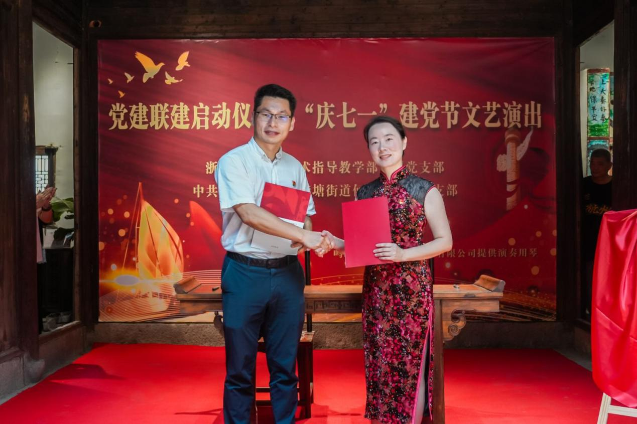 為深化黨建引領(lǐng)基層治理,推動(dòng)校地資源共享、融合發(fā)展,6月21日上午,藝術(shù)指導(dǎo)教學(xué)部直屬黨支部與轉(zhuǎn)塘街道何家埠社區(qū)黨總支舉行黨建聯(lián)建啟動(dòng)儀式暨“慶七一”文藝演出。此次聯(lián)建以黨建為紐帶,通過(guò)校地資源共享、優(yōu)勢(shì)互補(bǔ),探索基層治理新路徑,開(kāi)啟合作共贏新篇章。