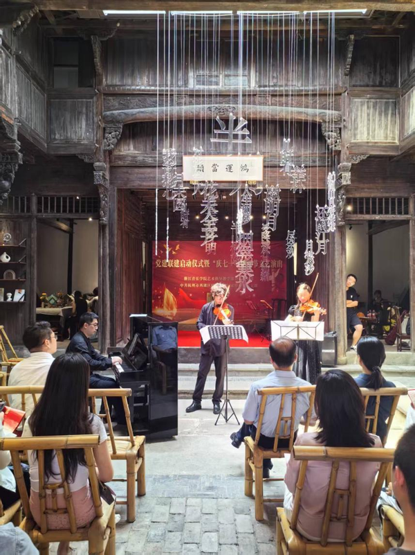 啟動(dòng)儀式后,浙音師生與何家埠社區(qū)藝術(shù)團(tuán)聯(lián)袂獻(xiàn)藝,呈現(xiàn)了一場(chǎng)精彩紛呈的文藝演出。