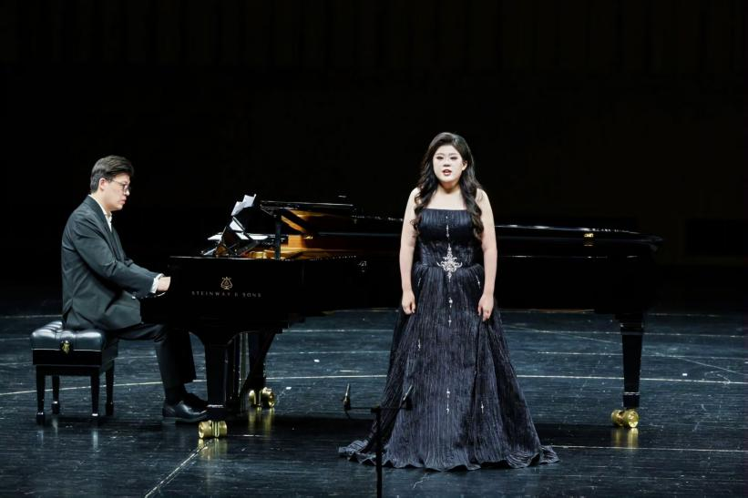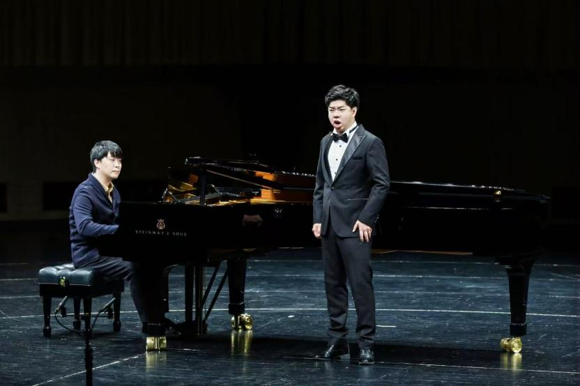 音樂會的第一部分中,聲樂歌劇系22級女高音王梓涵(導(dǎo)師:陶維龍)與藝術(shù)指導(dǎo)教學(xué)部金麥克老師共同演繹了亨德爾歌劇選段《我哭泣,為我的命運》《渴望你回到我身邊》。師生二人通過默契的配合,塑造出歌劇角色豐富而細(xì)膩的情感。在聲樂歌劇系男中音安科老師與藝術(shù)指導(dǎo)教學(xué)部林裔斌老師共繹的三首極富張力的詠嘆調(diào)《為什么你如此憤怒》《恐怖的殘殺》《好戰(zhàn)的心》中,鋼琴的低音線條如戰(zhàn)鼓般壓迫,與聲樂形成緊張對峙,完美呈現(xiàn)了作品中強烈的戲劇沖突。