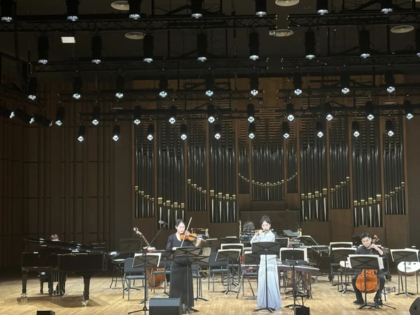 陳欣若創(chuàng)作的《探個(gè)夠》以創(chuàng)新的四重奏編制打破傳統(tǒng)民樂(lè)邊界,由張正、張晶潔、張正宸及遲夢(mèng)林4位演奏家共同呈現(xiàn),作品以探戈的強(qiáng)烈韻律與即興風(fēng)格為基底,竹笛的靈動(dòng)與大提琴的渾厚形成鮮明對(duì)比,小提琴的抒情線條與鋼琴的復(fù)雜節(jié)奏相互映襯,既保持民族傳統(tǒng)樂(lè)韻,又融入現(xiàn)代音樂(lè)的創(chuàng)作思維,展現(xiàn)了民族音樂(lè)在當(dāng)代語(yǔ)境下的無(wú)限可能。