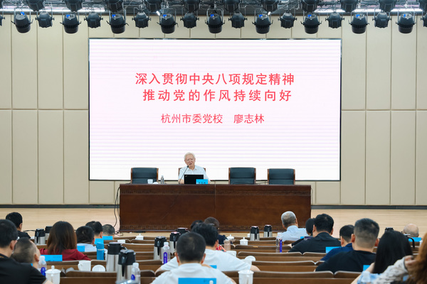 開班儀式后,杭州市委黨校資深教授廖志林圍繞“貫徹中央八項(xiàng)規(guī)定精神,推動(dòng)黨的作風(fēng)持續(xù)向好”進(jìn)行了深入透徹的專題輔導(dǎo)。