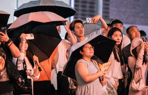 當(dāng)《如愿》的旋律響起時,現(xiàn)場出現(xiàn)了動人的一幕:“山河無恙,煙火尋常”的歌詞與西湖夜景完美融合,許多觀眾情不自禁地跟著合唱,有人悄悄拭去眼角的淚花。“上午看了閱兵儀式,晚上聽到這首歌,突然就懂了先輩們用生命換來的和平有多珍貴。”一位“95后”觀眾在社交媒體上寫道,溫情旋律為音樂會注入一抹暖色。在抗戰(zhàn)勝利80周年的特殊時刻,這首描繪平凡生活的歌曲格外動人,也讓觀眾深切體會到和平年代的珍貴。而《我愛你中國》則將愛國激情推向沸騰高潮,與白天閱兵盛典的磅礴氣勢形成完美呼應(yīng)。當(dāng)“我愛你中國,親愛的母親,我為你流淚,也為你自豪”的旋律響徹西湖夜空,現(xiàn)場觀眾自發(fā)打開手機(jī)燈光,點(diǎn)點(diǎn)星光與湖面倒影連成一片,成為最震撼的“星空合唱",更有幾位觀眾在微雨中伴著旋律盡情舞蹈,這是發(fā)自內(nèi)心對和平年代的感恩與幸福。